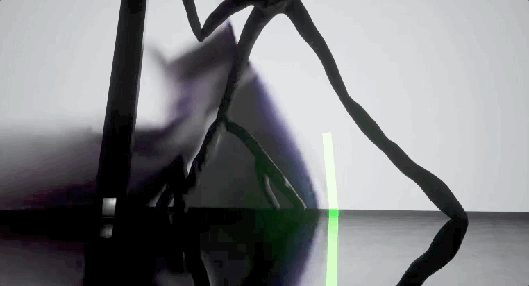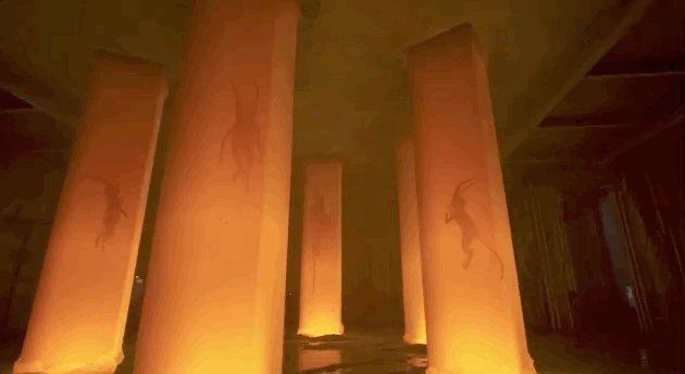 如果你直接走进面前的琥珀色柱子,变化就会出现——"The National Anthem"这首歌的标志性鼓和贝斯线被调出来,与背景的颤音相互呼应。而当你走出柱子时,鼓声和贝司声就消失了。