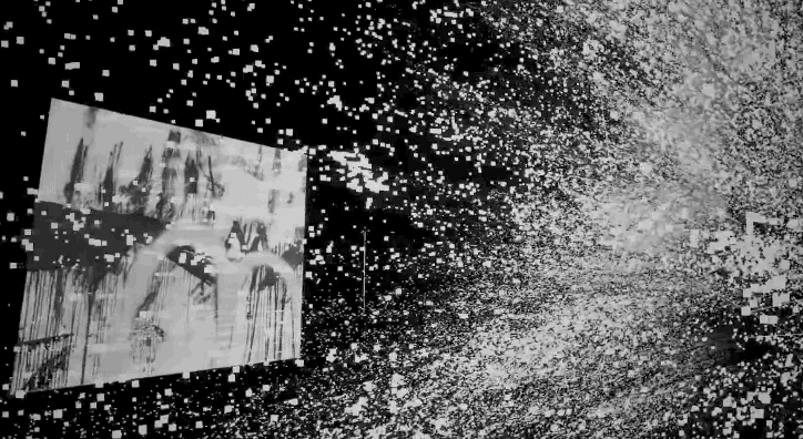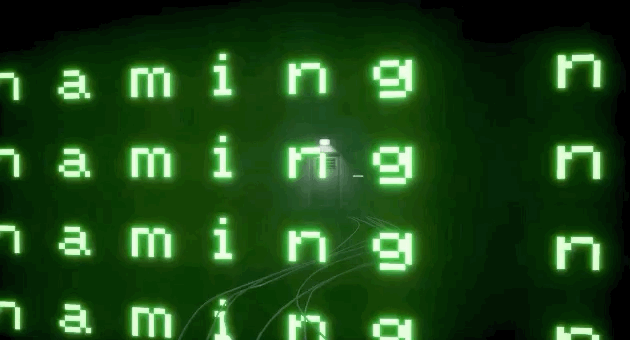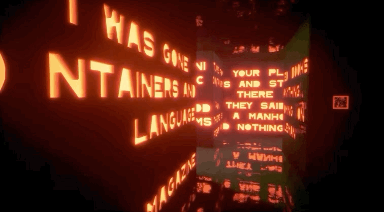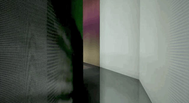 伴随着专辑《Kid A》的第一首歌曲“Everything In its Right Place” ,Radiohead 的艺术作品在走廊以光速滑动。