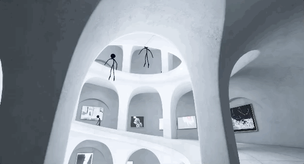 在这座永无止境的建筑物内游荡时,你会经常看到 Radiohead 的小熊、一群漂浮在视野中的幽灵以及像小恶魔一样的生物。有时,它们会默默出现在你的身后,与你一同欣赏 Radiohead 的艺术品。
