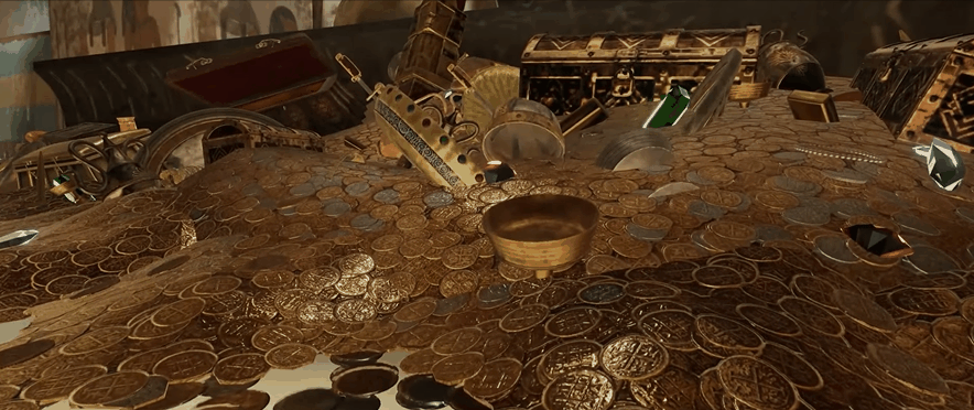 最后众神因玩家们在危险面前的勇敢而进行了嘉奖,解除了玩家的诅咒。这时,遗物显示出了一张通往古代宝藏遗址的地图,于是玩家们在此踏上征途,还有更多的冒险在等着他们......