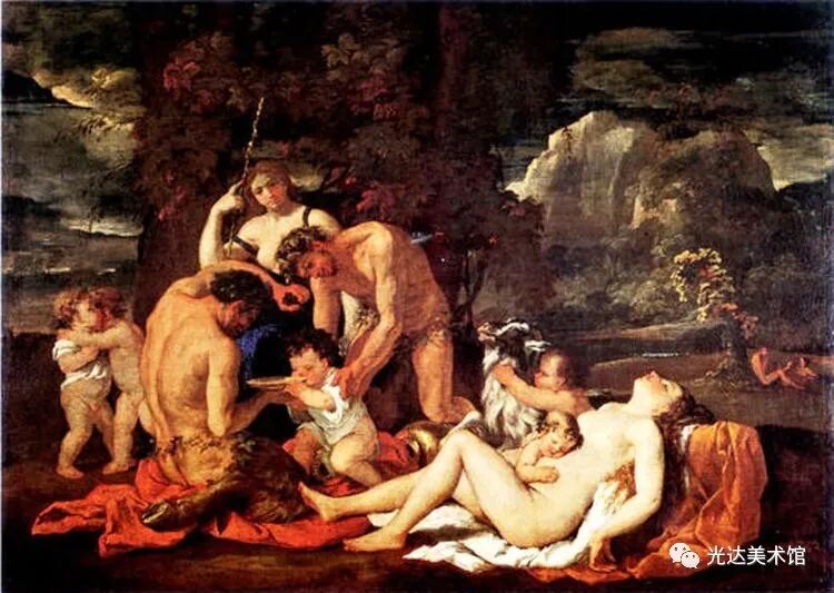 我朋友马蒂亚斯(Mathias E.)受柏林新画廊邀请,策划一个关于死亡主题的画展,他回答说只需展三幅画就够了。第一幅是普桑的《狄奥尼索斯》,第二幅是卡斯帕尔·大卫·弗里德利希(Caspar David Friedrich)的《海边僧侣》,最后一幅是巴尔奈特·纽曼(Barnett Newman)的《地平线之光》。我问其理由。第一和第二幅之间,我看得出图像学上的相似性:一个孤独的人物在自然景色之中。第二和第三幅之间,我也看得出形式上的相似性:简疏地画了两片几乎单色的水平色域。但我看不出,基于自然主题类似性的第一组,是如何过渡到基于抽象图案的第二组。他给我解释说,普桑画的自然,无论其如何崇高,都不能消遣一个犬儒者的眼光。而在弗里德利希那里,是僧侣的内心世界不足以填充其焦虑,于是他转向大自然,但大自然失去了普桑画中的丰饶和秩序。阿卡迪亚已干涸,自然只是空气和海水之间、沙滩和天风之间元素的搏斗。两个世纪之后,纽曼表现了这种物理和精神的双重丧失。