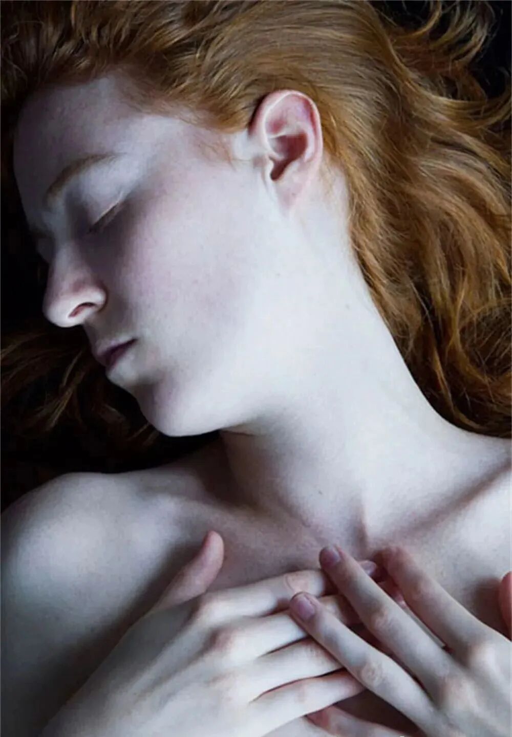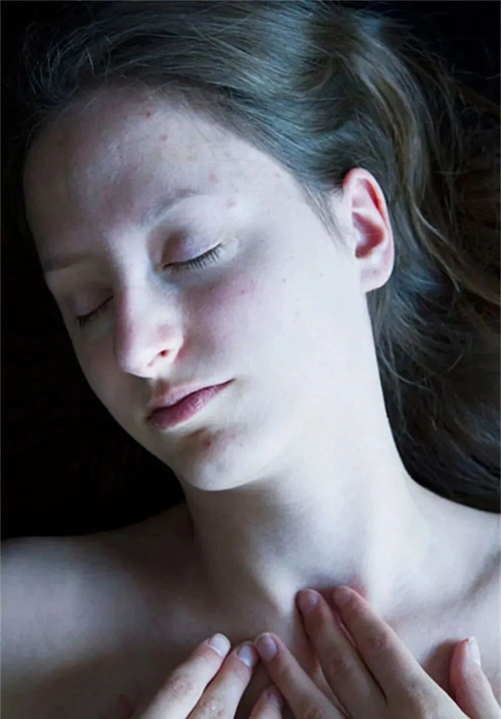 Carla van de Puttelaar,荷兰女摄影家。她的作品带有一定的自传色彩。从一个纯粹女性的视觉去看女性的身体:苍白的皮肤,低饱和度的冷色调,皮肤的质感,以及不与镜头交流闭上眼睛沉浸在自己世界的模特。她的照片给人的感觉含有欲言又止的昧情元素,但又不过激,让观者在不经意中产生距离的美感,感受更多的是模特身上散发着一种反自然的冷感。