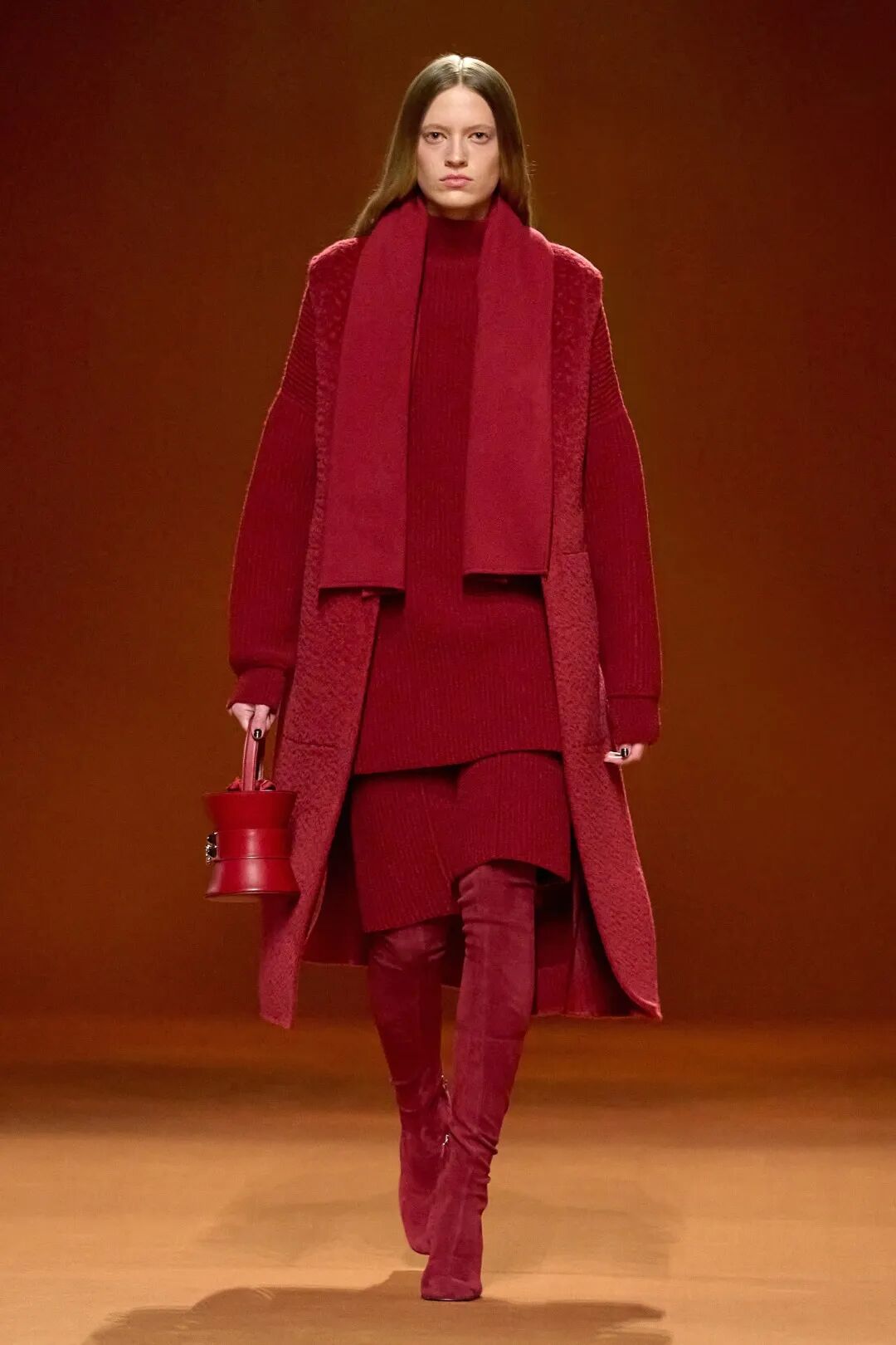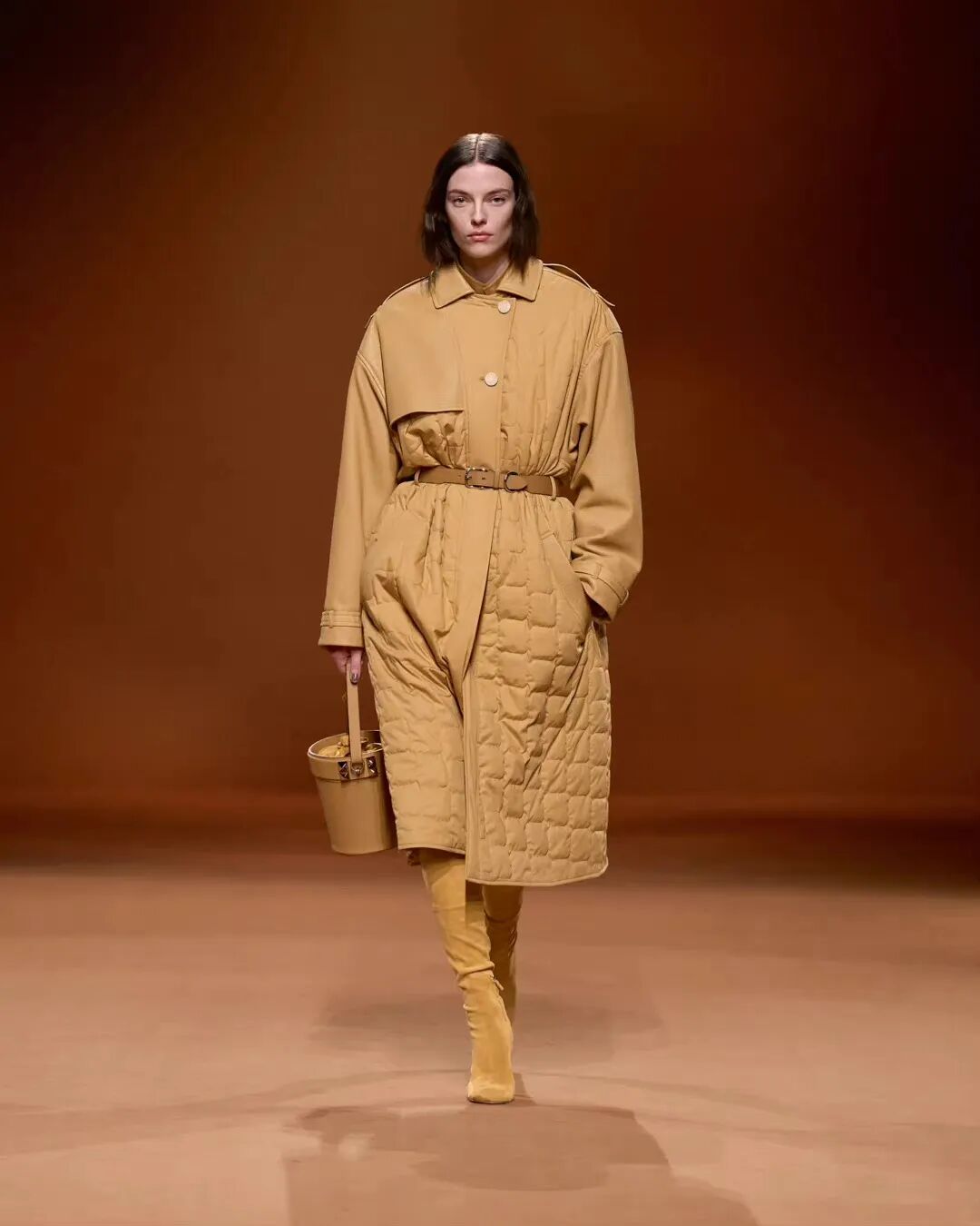 Hermes2023秋冬的色调,主打大地色系。试想,秋冬日里的阳光撒在地板上,是怎样一种温暖呢?我想,Hermes试图把这种温暖带进服饰里,于是便选择了最具有代表性的暖色系。