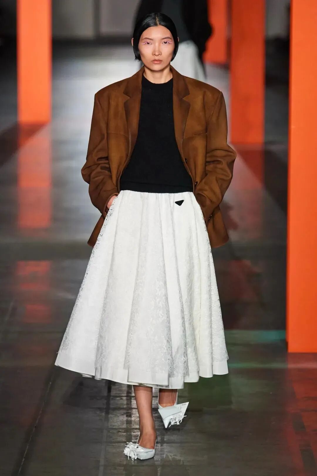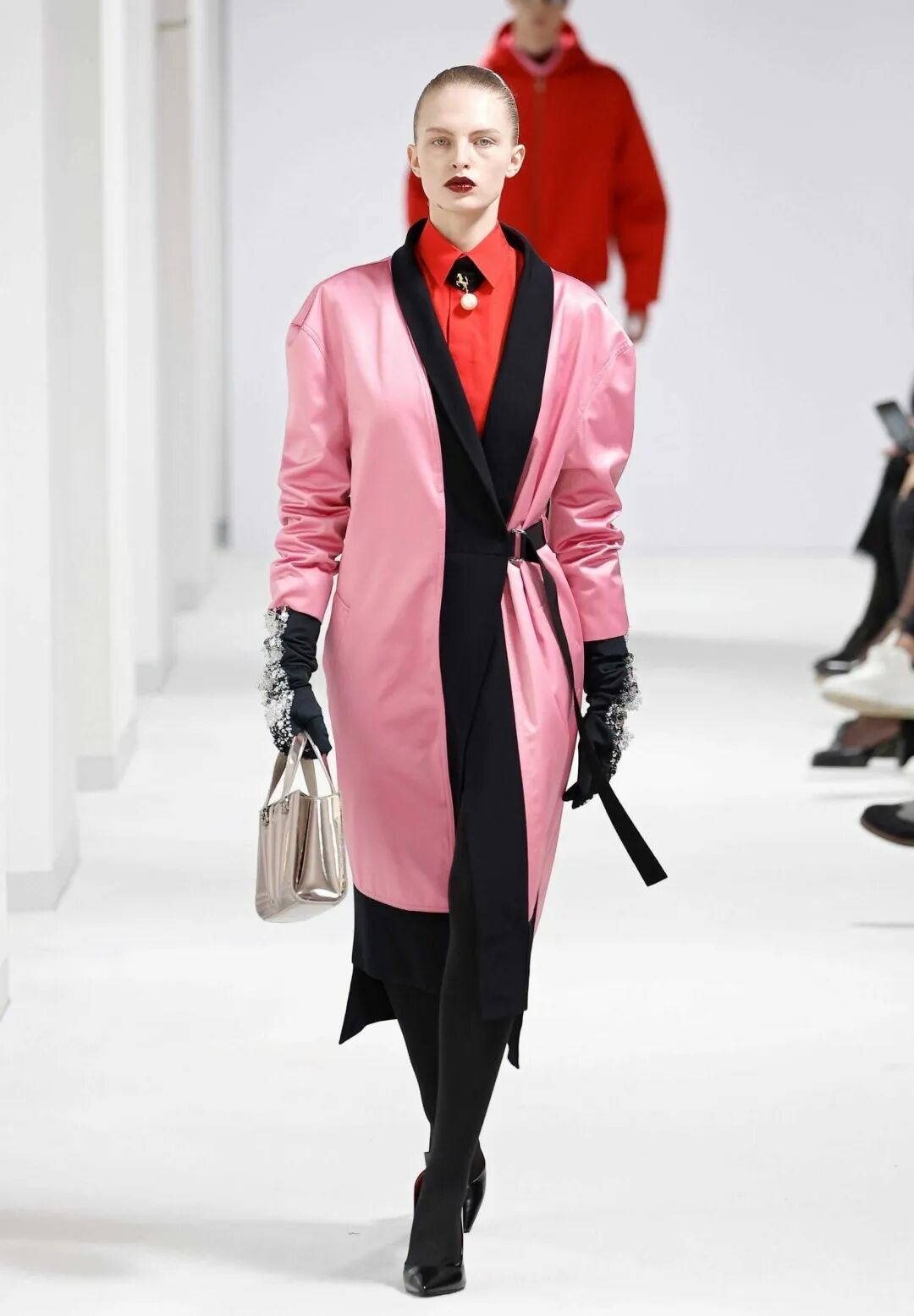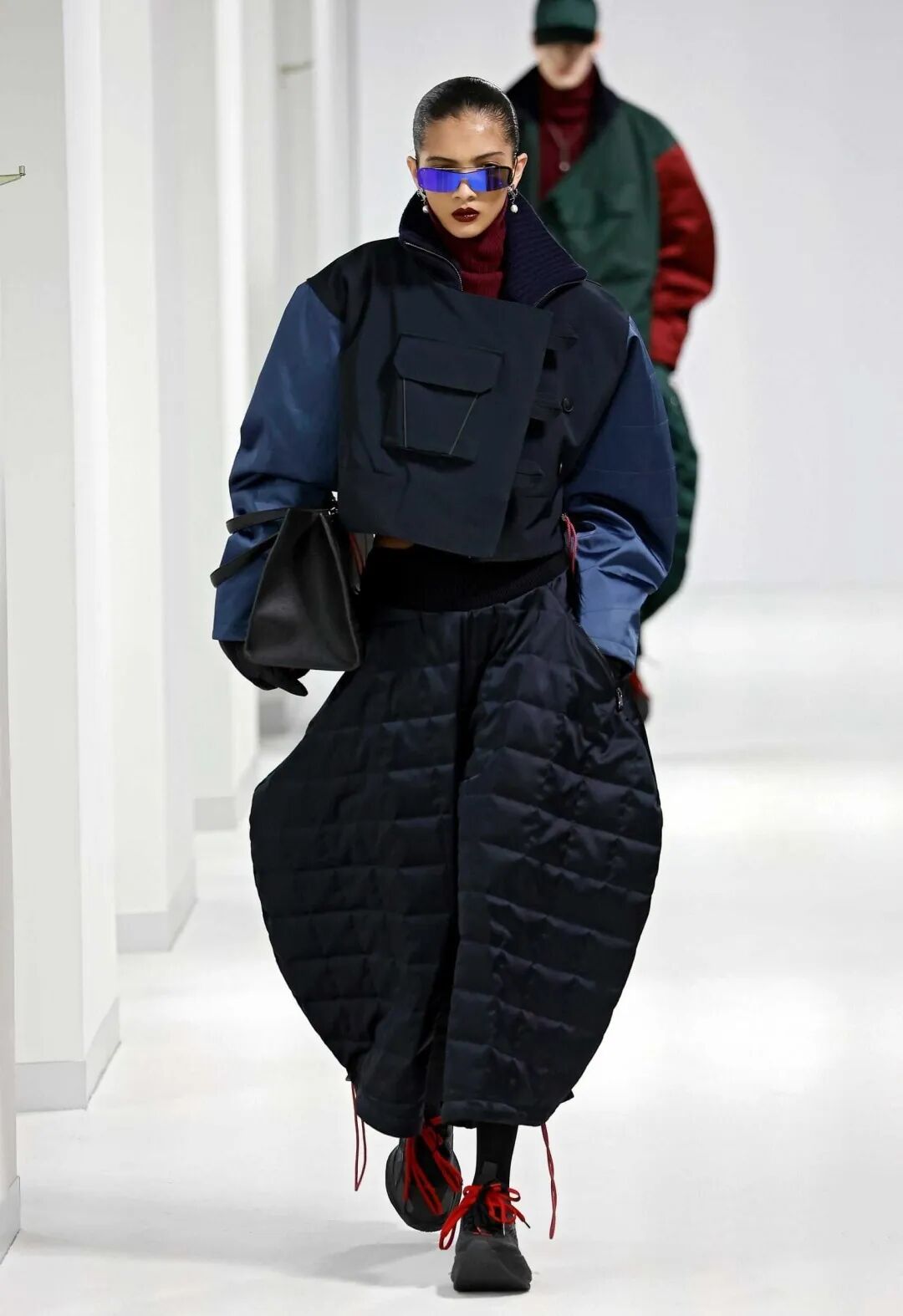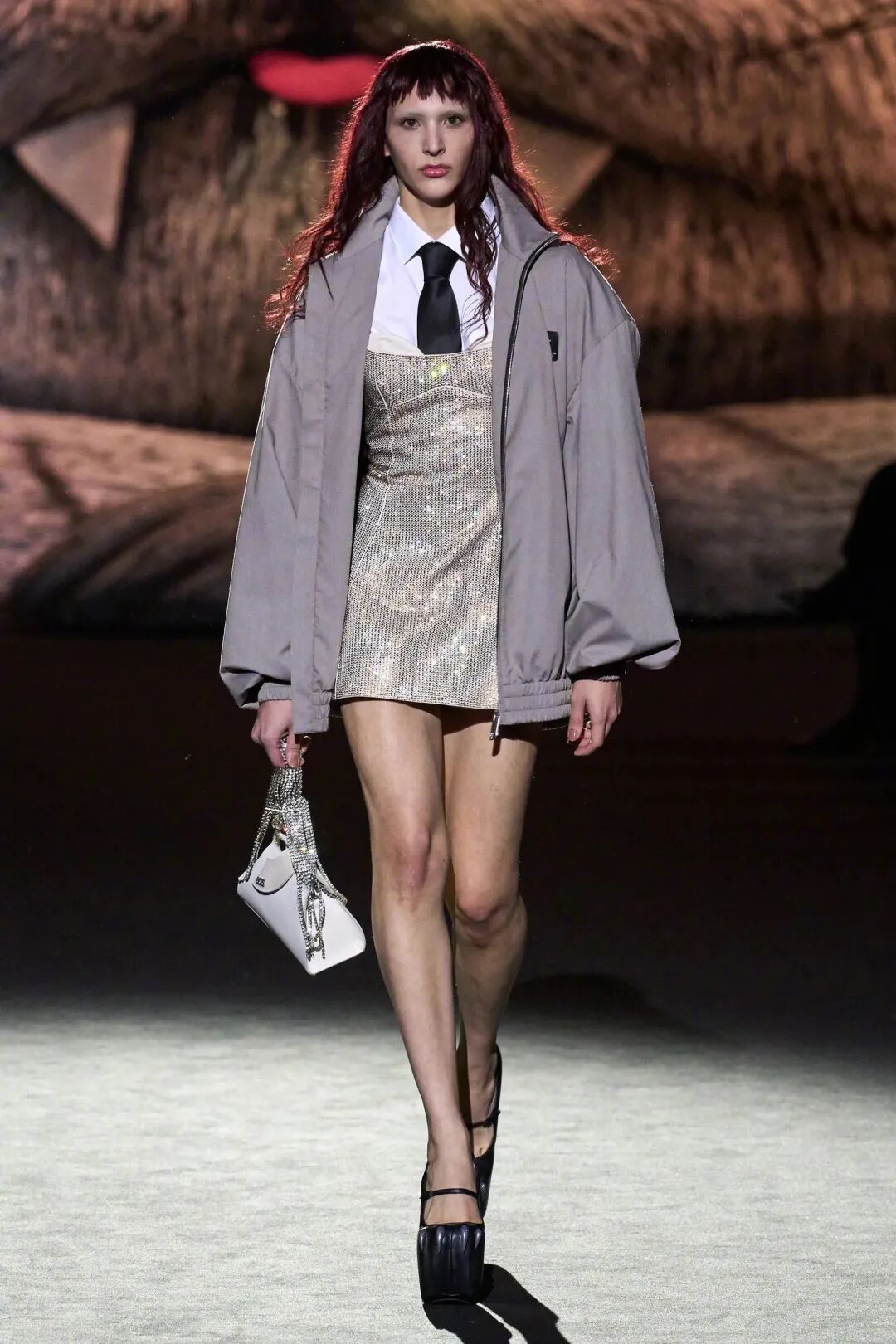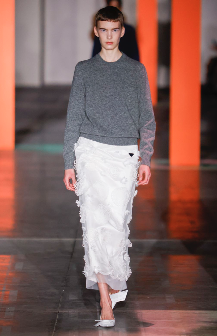 如果要我pick一套这次PRADA秀场上印象最深刻的look,一定是这套充满矛盾感的混搭造型。
