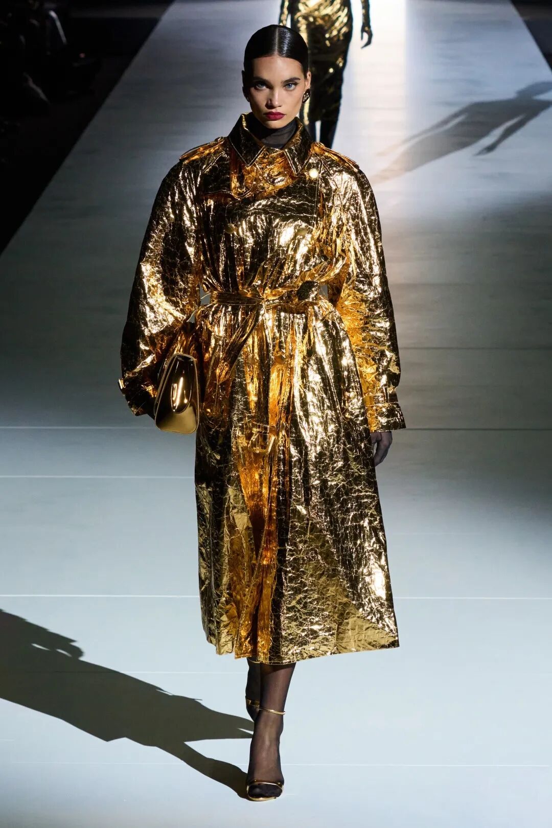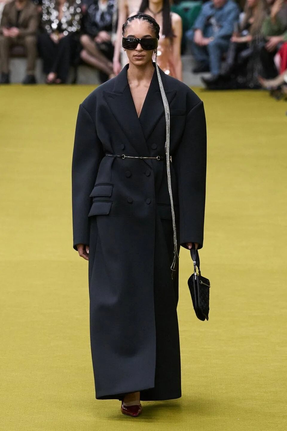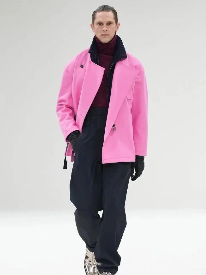 BALLY此次大秀到处可见品牌标志性的Emblem马衔扣图案,硬朗廓形的外套,或者质感极强的皮革,都在书写着BALLY风范。