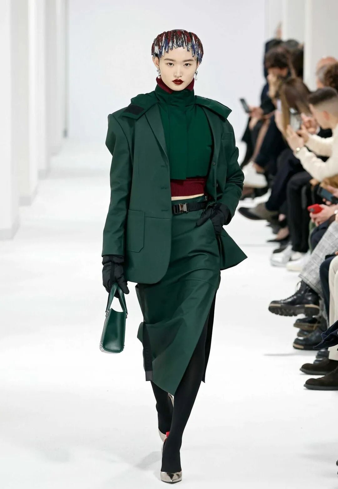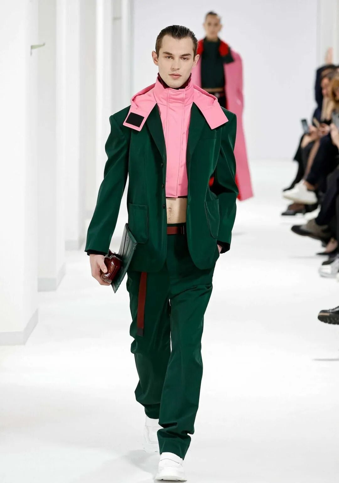 色彩也是被FERRARI玩转了,亮眼粉、标志性的活力红,尤其是浓郁的墨绿色(也是我本人认为此次FERRARI秀最好看的颜色),很贴合 FERRARI品牌不断挑战的调性。