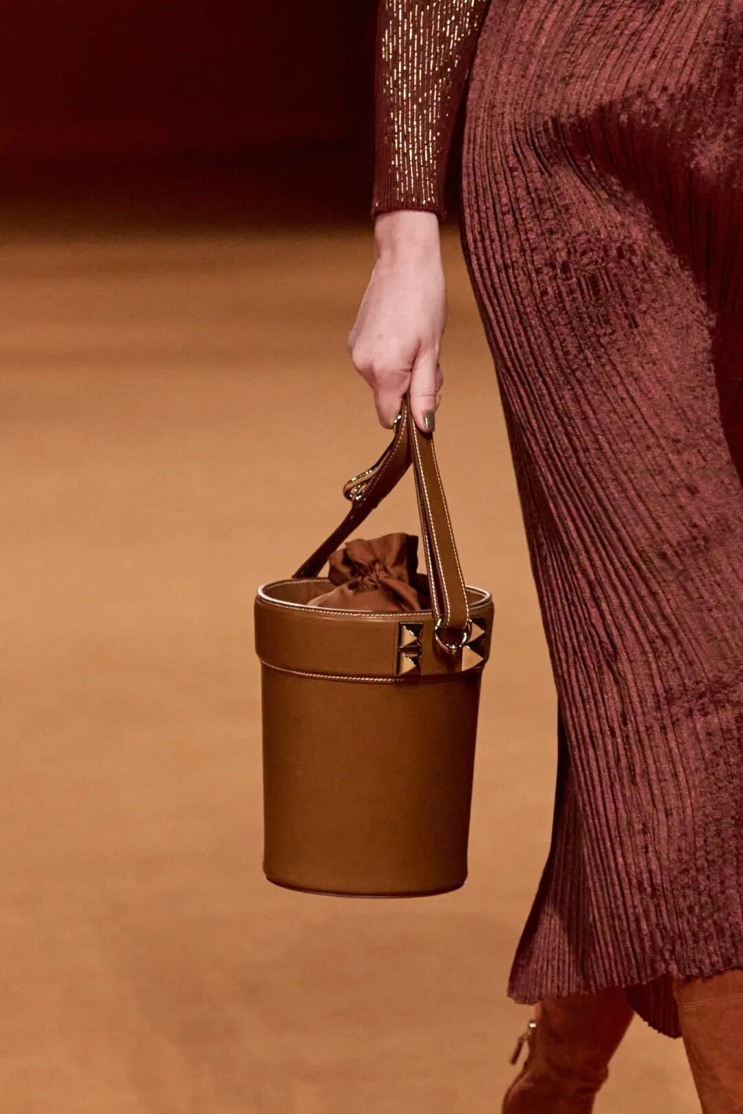 当然,Hermes秀场上更不能不看的,还得是包。毕竟,造型带点可爱的水桶包谁能拒绝呢?