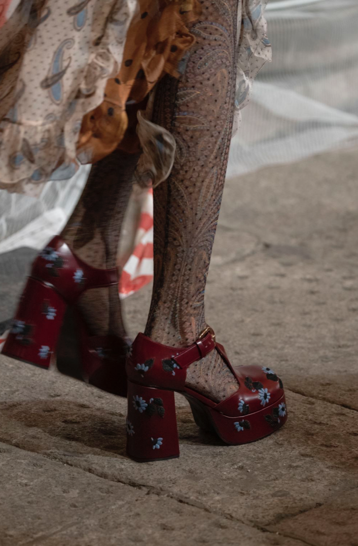 有了这些任意的混搭,ETRO再在鞋子上做做文章,比如中东风格厚底鞋变成靴子,亮色玛丽珍皮鞋拥有了粗跟和厚底。