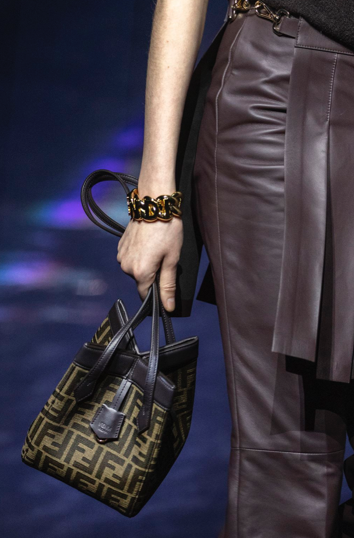 FENDI大秀中有两款包格外引人注目,分别是马鞍造型的C'mon 手袋和Origami手袋。前者偏向柔和圆形的线条,后者则仿照折纸打造线条与棱角分明的手袋,可以拉开迅速转换成一个购物包,可以供不同场合来选择。