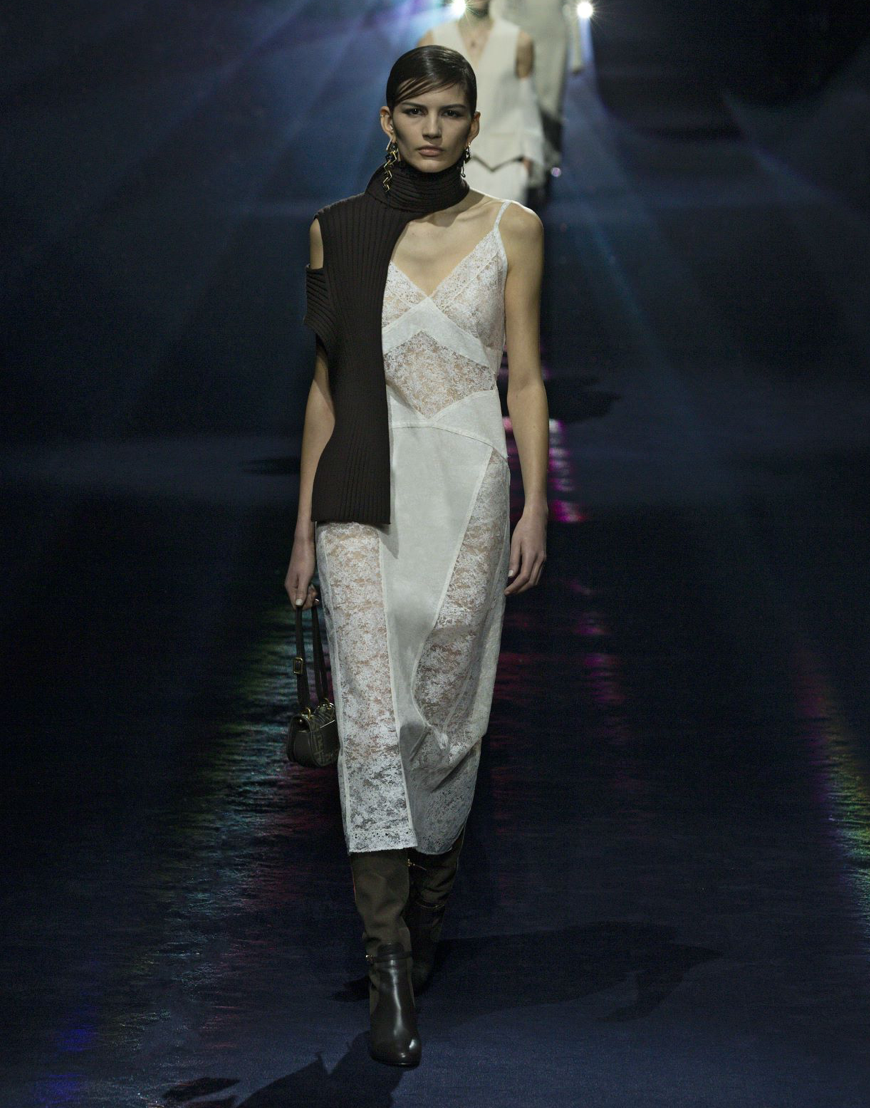 FENDI用服饰打造了一群柔中带刚的女性,把男装里的面料和版型融入到女装之中,穿这些服饰的女性一定事业有成,社会地位高,她们的着装非常显贵,但也会有一丝保守与拘束。