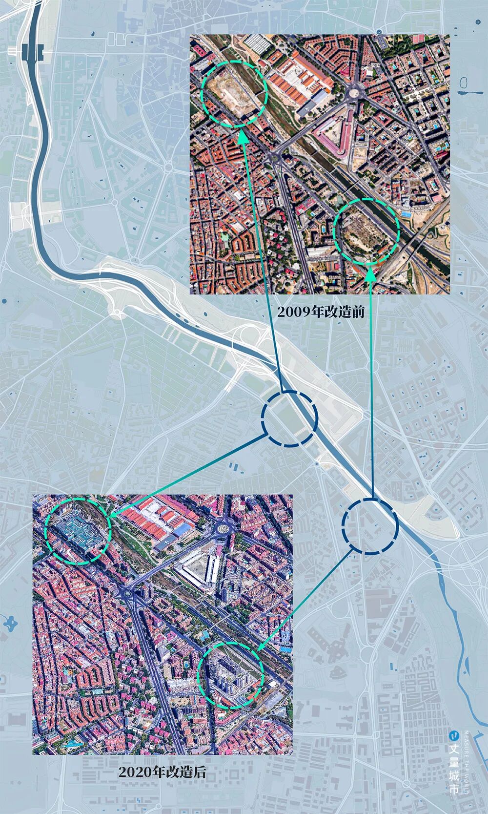2003年,新上任的市长决定对这条交通动脉进行一场大刀阔斧的「手术」——将束缚曼萨纳雷斯河的M30路段地下化,以此缝合被割裂的城市空间。