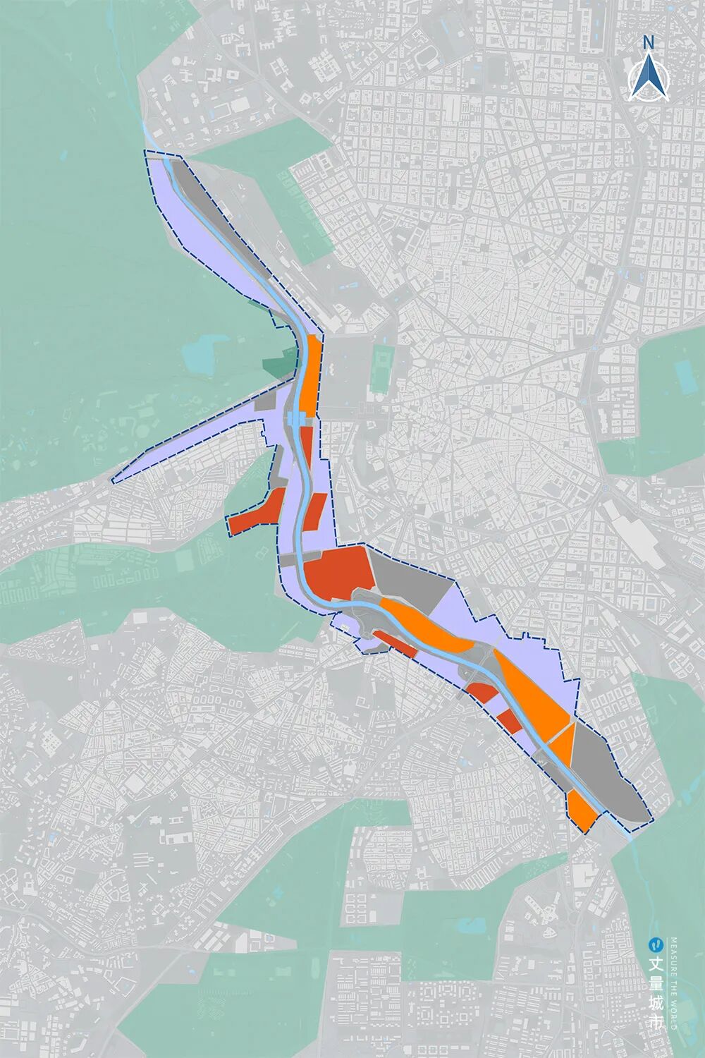 曼萨纳雷斯河周边建筑大多建设于1960-1970年代,在可达性和硬件设施方面较为缺乏。周边的商业大多为服务业态的小企业,且该区域的劳动参与率低于马德里的平均水平。基于该背景,马德里制定了两条主要的更新策略:
