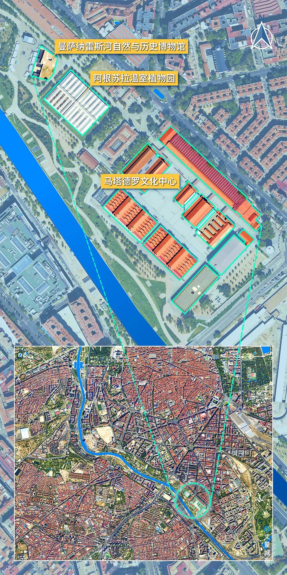 ▼ 马德里河岸公园通过文化设施,以及沿线城市面貌更新带动重塑城市中心