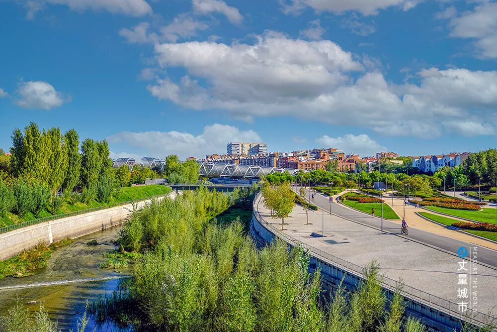 马德里河岸公园项目总占地120公顷,从2007年开始建设,于2011年完工。通过建立一个沿河岸的城市绿廊,将周边其他有价值的户外空间联系起来,成为缝合中心城区与城市周边组团的新的绿色发展轴线。