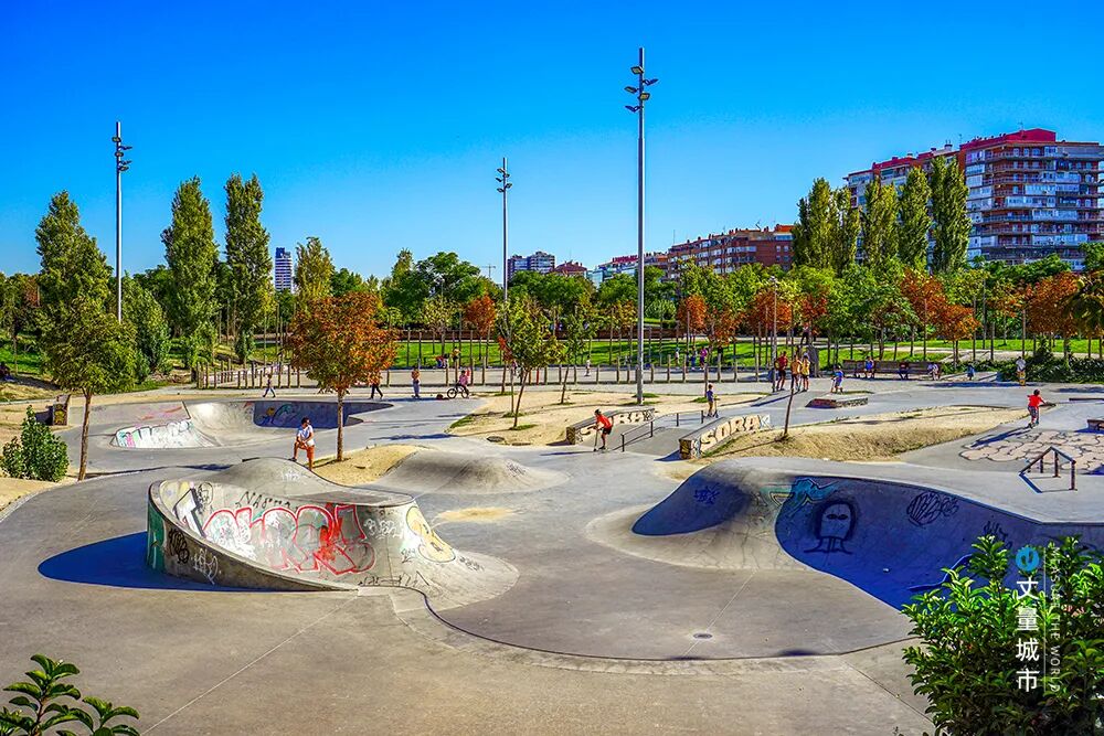 滑板公园是最能吸引年轻人的地方,也是马德里河岸公园中最具活力的场所。