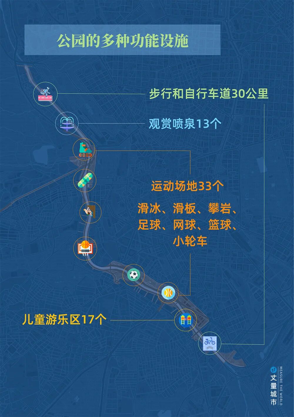 从公园本身的功能来看,马德里河岸公园成为了一条集合生活、文化、生态功能的河流,是一个覆盖全年龄全天候的休闲活动场所。