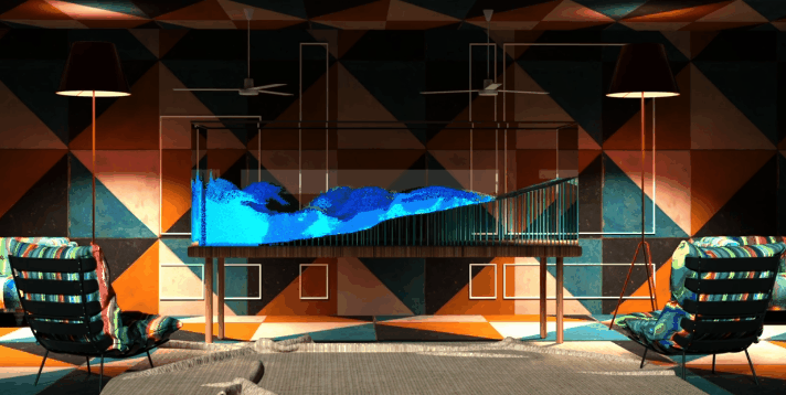 VVOX 开发并建造了各种视觉效果惊艳的装置,由于全方位的新型裸眼 3D 技术,它可以让观看者无死角的体验虚拟场景在现实中带来的临场感和真实效果。VVOX 创建了大量全新的 CG 内容,以创新的方式增强 Microsoft 休息室的室内氛围,并且改善了游客体验建筑物时的观感享受。