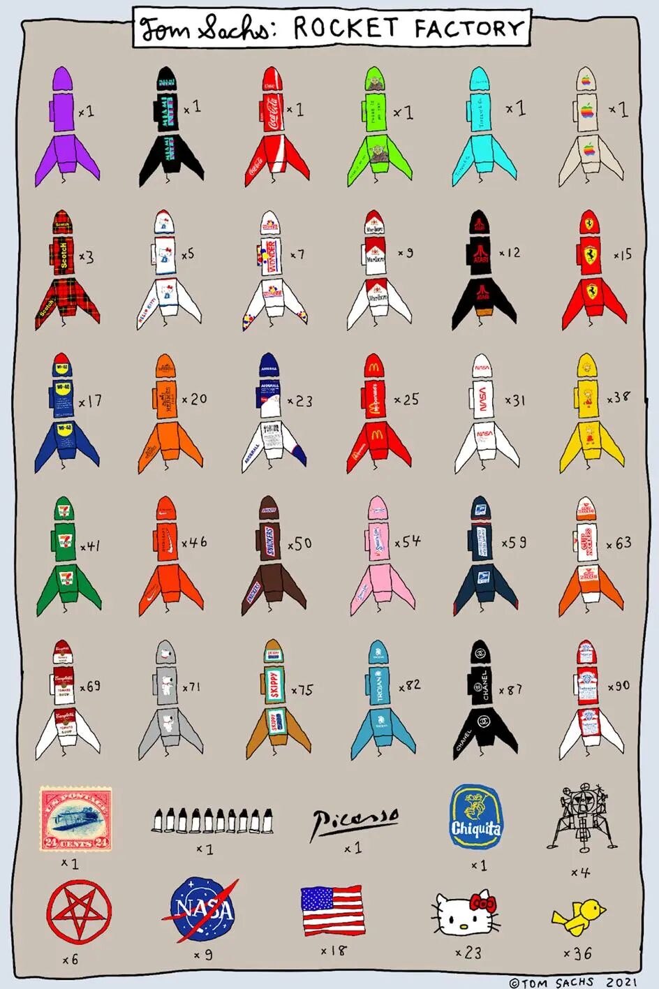 Rocket Factory 系列 NFT 同样是 Tom Sachs 对太空的雄心、工程、美学和符号学着迷的另一种表达。