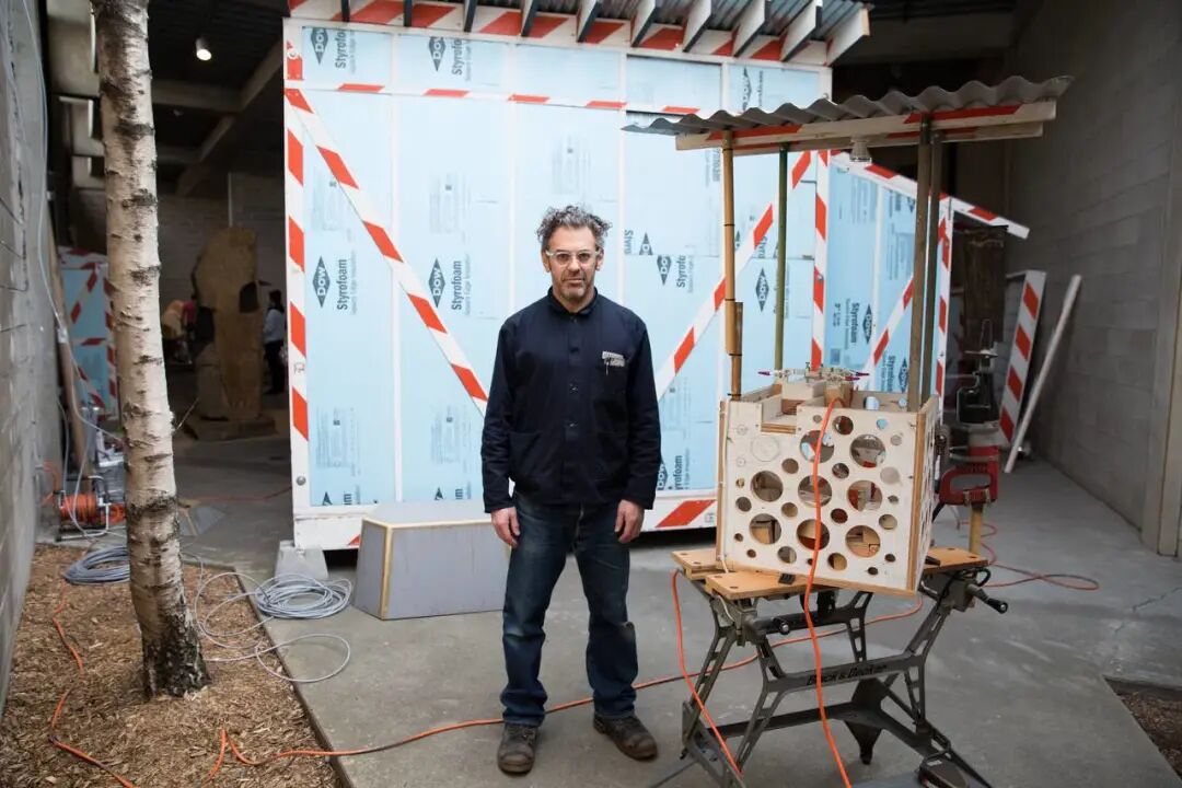 他在纽约的工作室既是火箭工作室,也是任务控制中心。在那里,他将宇航服拼接在一起,敲击着陆模块、钢、胶合板和泡沫的复制品,用艺术创作实现自己的太空精神。