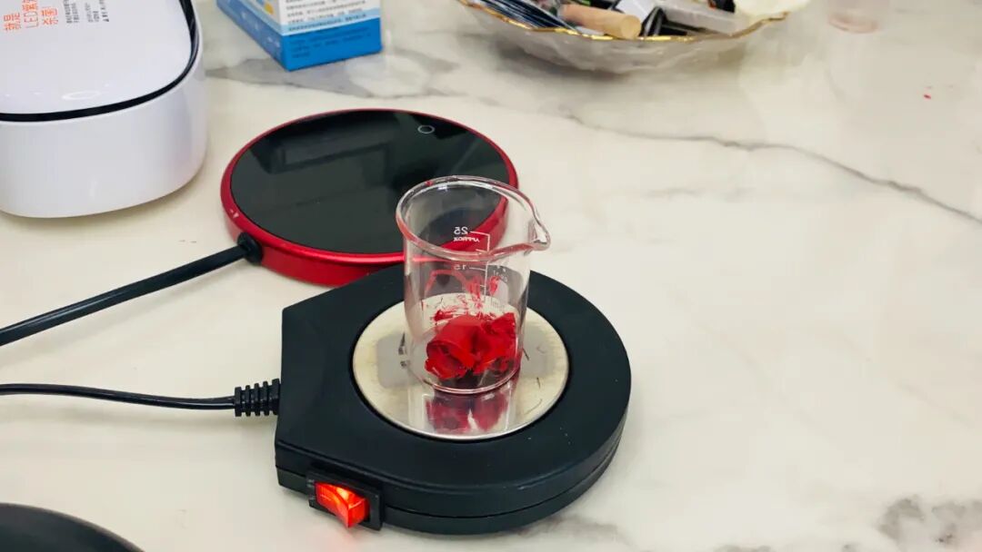 “摔断的口红也可以用玻璃容器隔水加热,然后重新注模恢复原本的形状。”