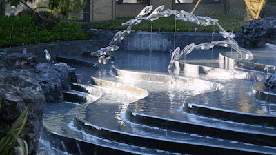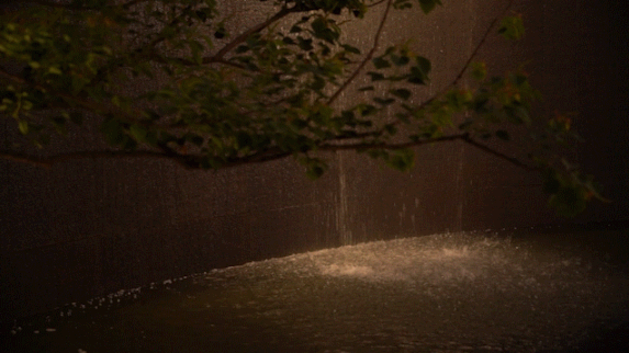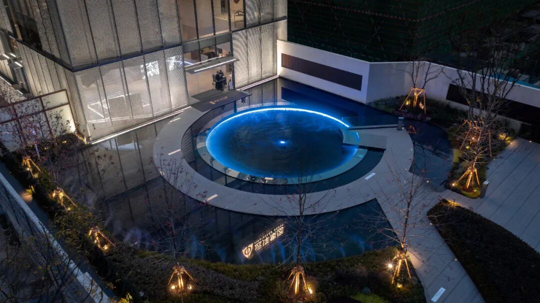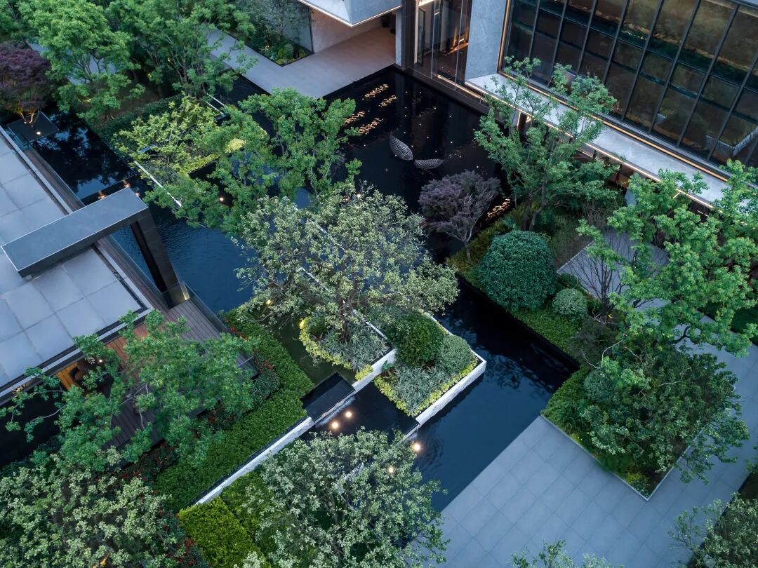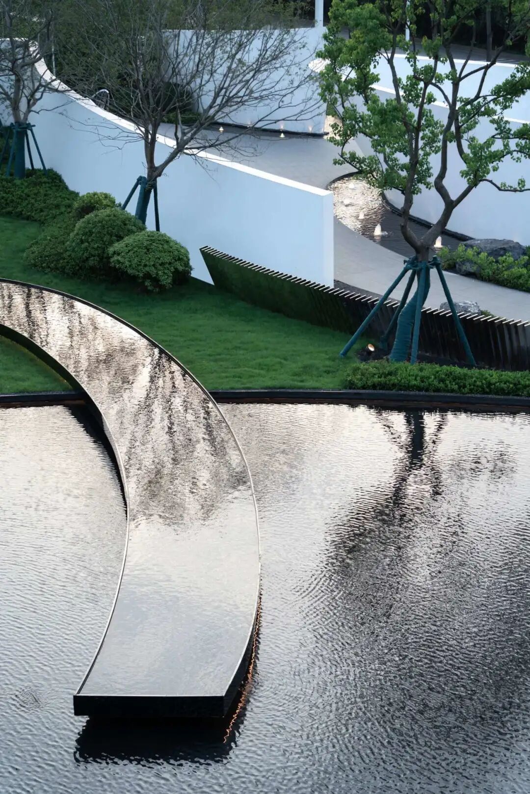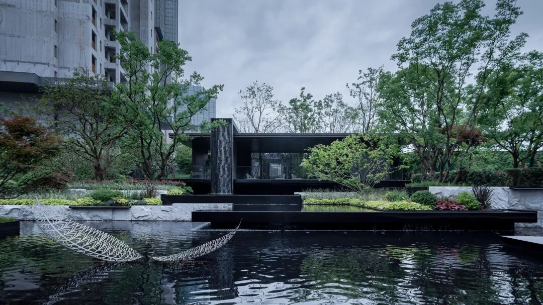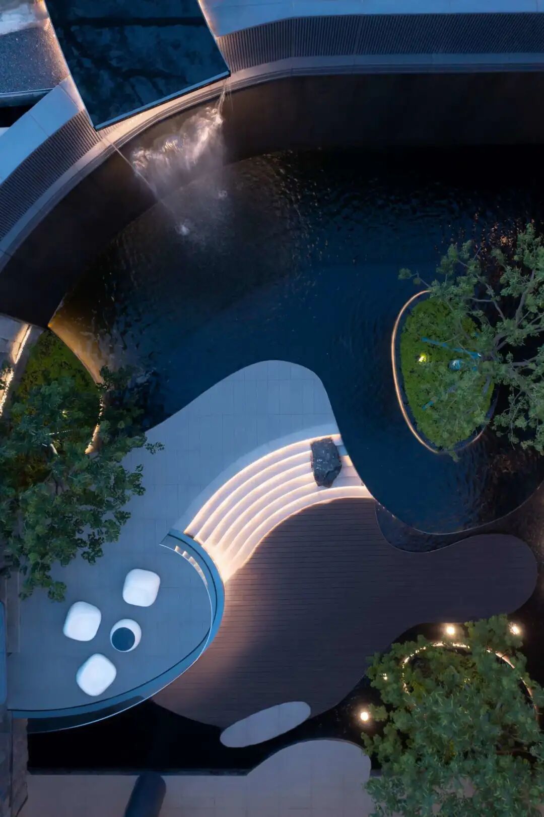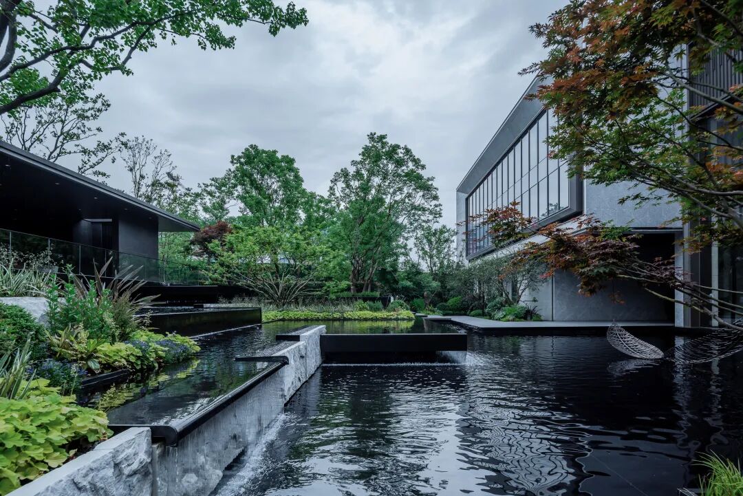 以跌水声模拟淅淅沥沥的雨夜,以声为院子带来静谧氛围,植物掩映之下,使内心归于平静。