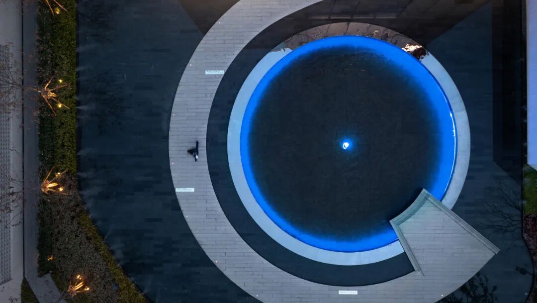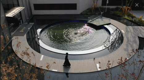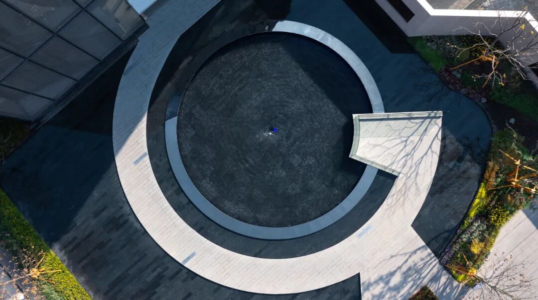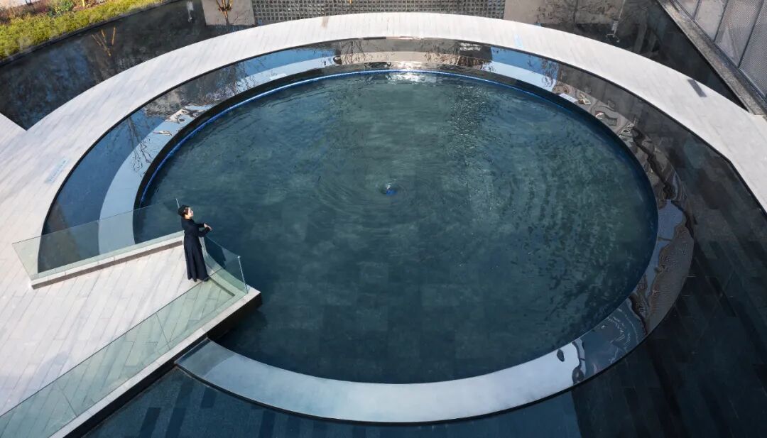 ▽浅水池底以木槿花纹装饰,木槿花坚韧、恒久之寓意;融谦谦君子之道于府居之境,尽显有而不居,襟怀天地的大智慧。