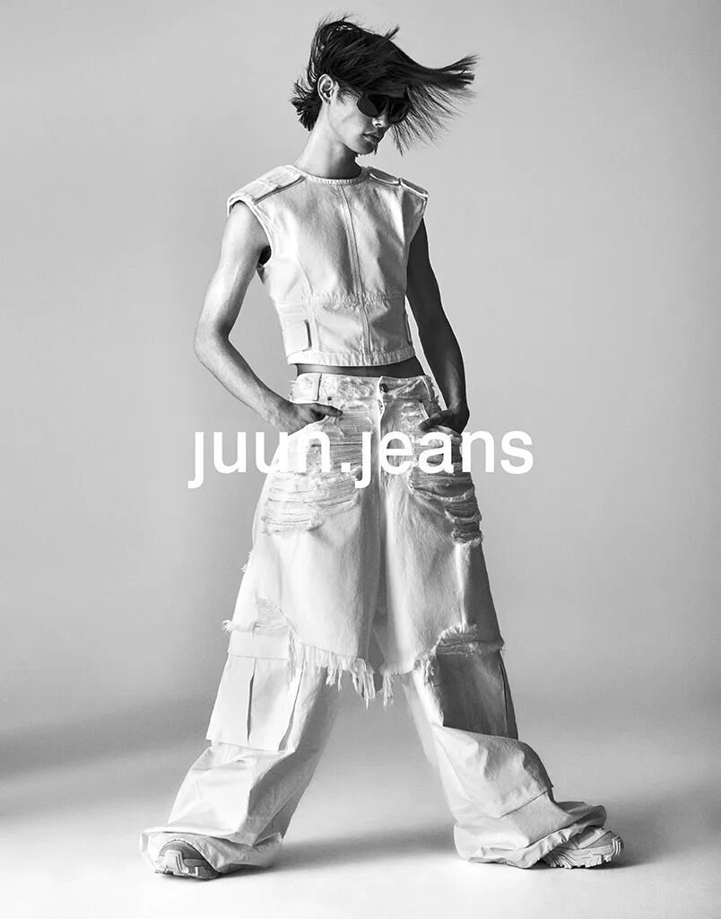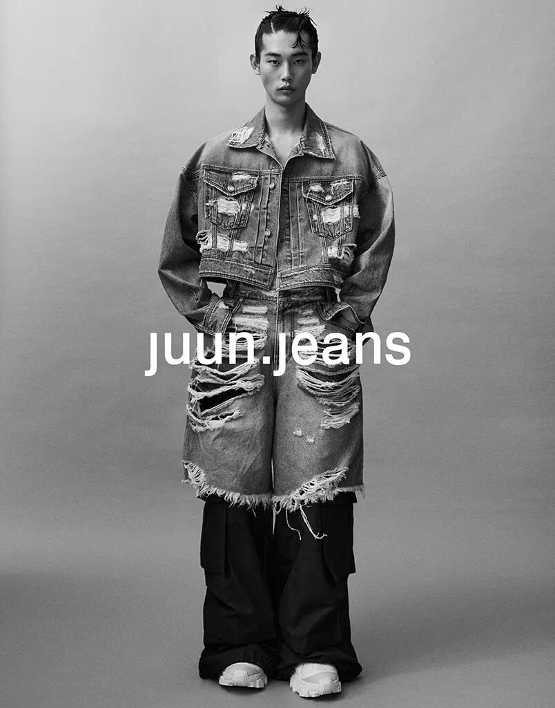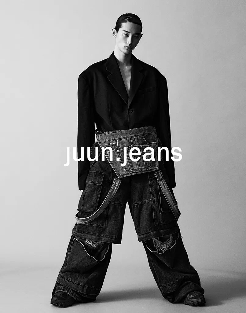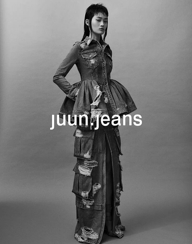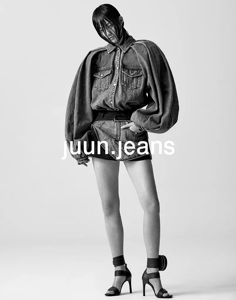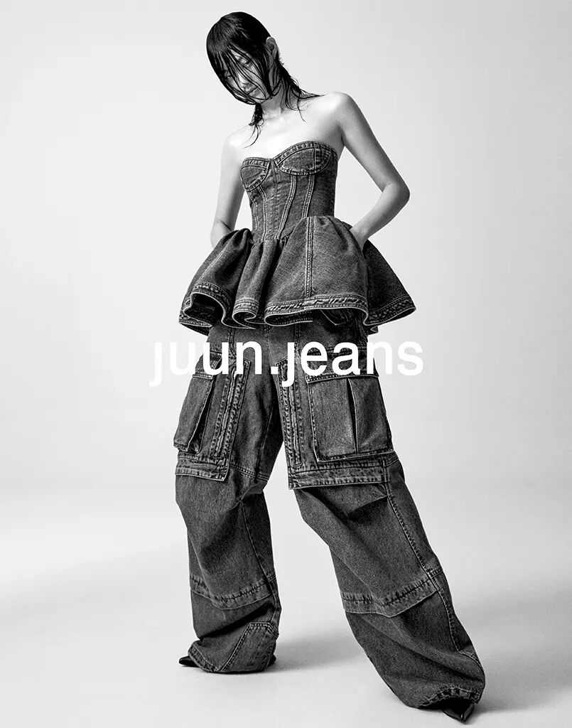 2023春夏系列,设计师以"JUUN.JEANS"为主题展开了一场有关于丹宁的想象。