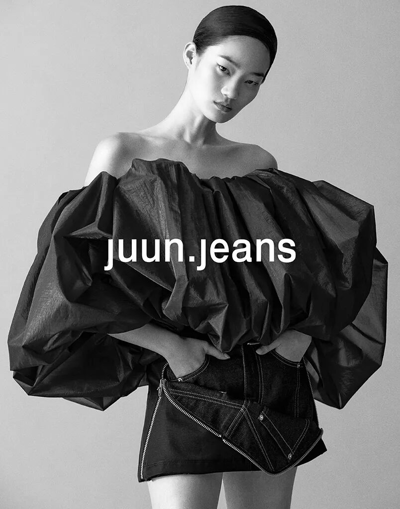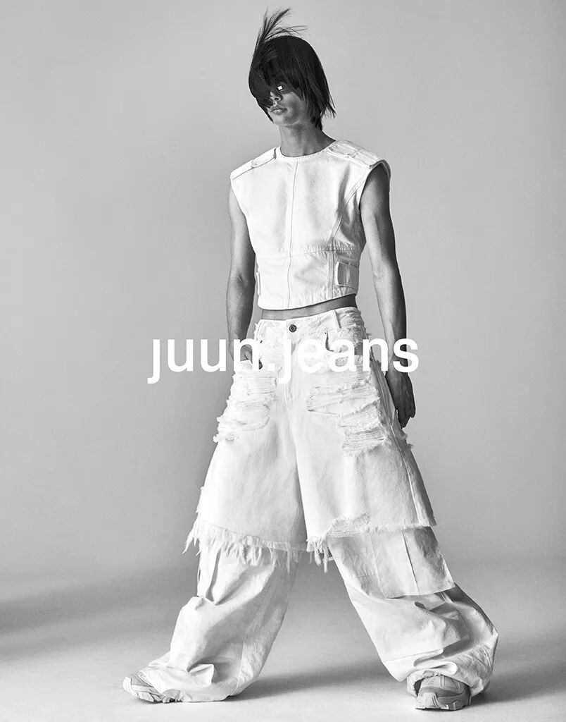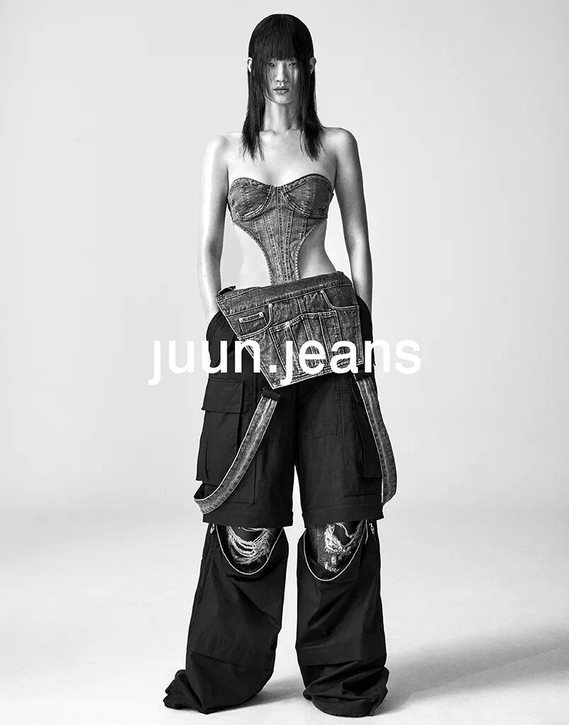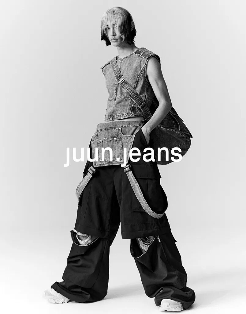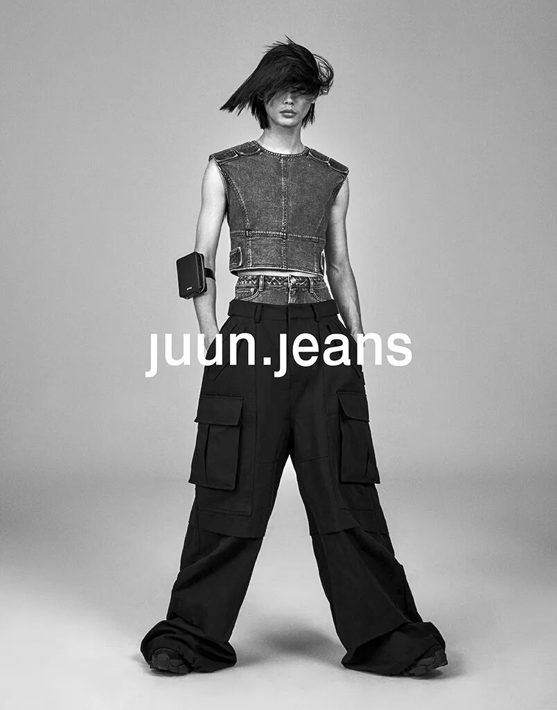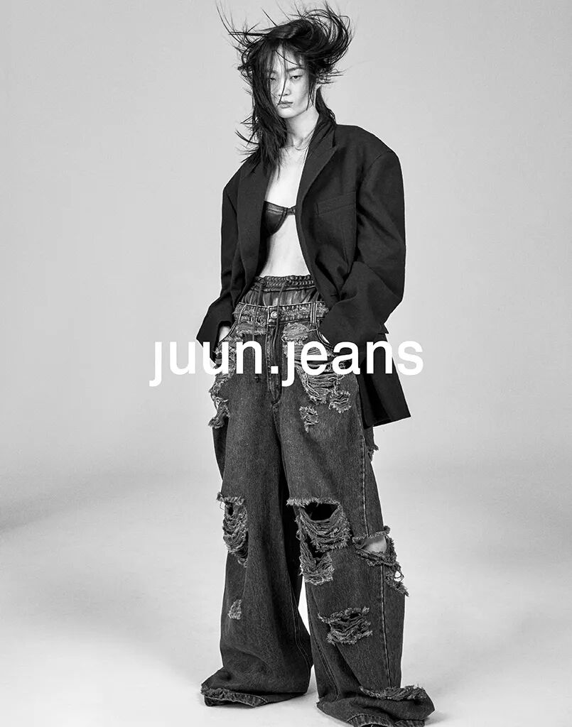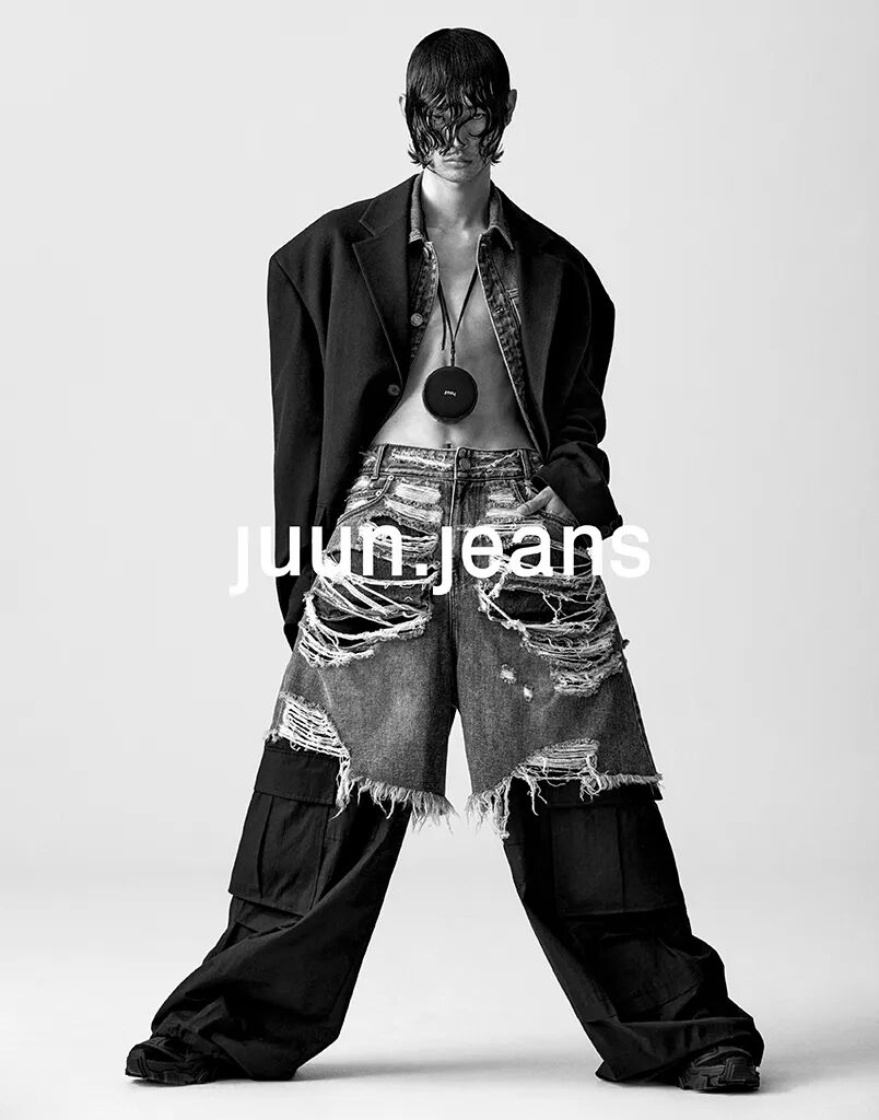 2023春夏系列,设计师以"JUUN.JEANS"为主题展开了一场有关于丹宁的想象。