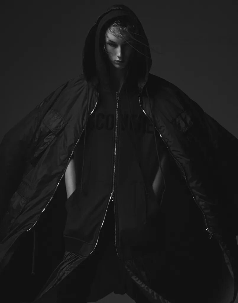 大廓形的剪裁与单宁硬挺的触感相互呼应,Juun.J DNA之中的解构主义设计应用在服装的分割之中。宽肩的飞行夹克、双腰头叠加的牛仔裤和戗驳领的西装外套等经典的单品依然在,女装中的解构胸衣让人眼前一亮。