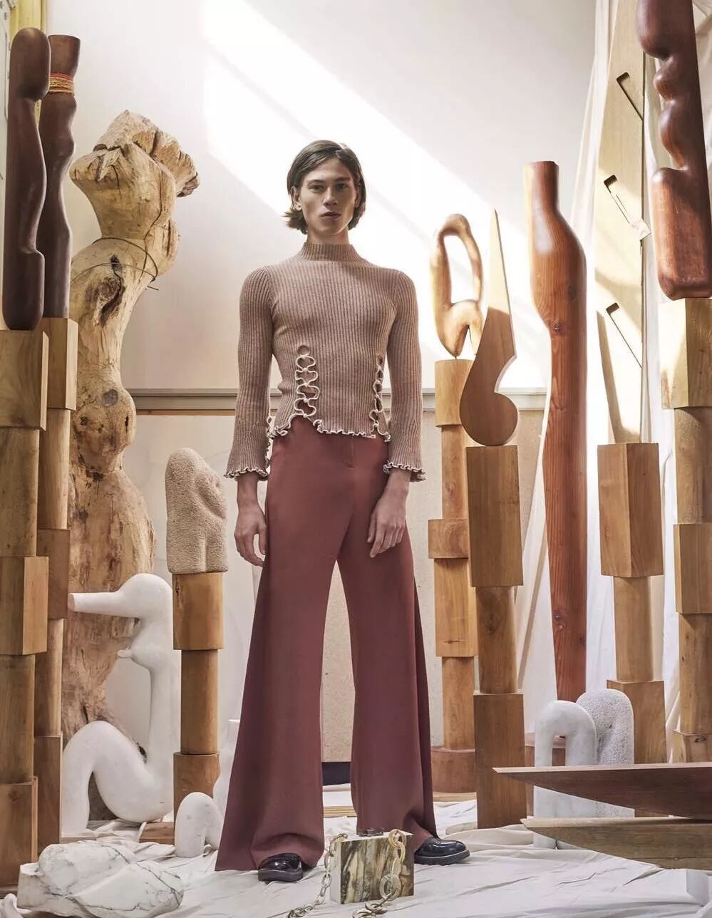 精心缝纫的线迹延伸而出的不规则花边与褶皱肌理象征着风光无限的海底景观。看似活泼随性的剪裁,蕴藏着设计师的严谨与巧思,简洁的轮廓辅以各式点睛的设计细节便足以打动人们敏感的内心。