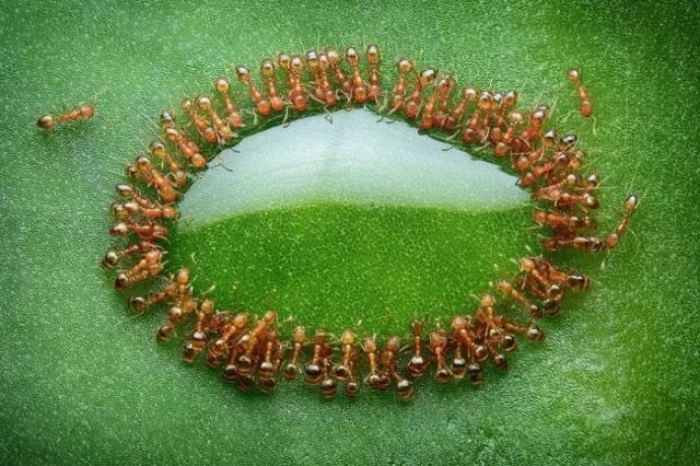 ▲蚂蚁在花蜜边围成一圈,马来西亚