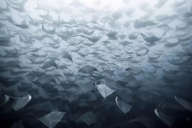 ▲海洋深处的鹰鳐鱼群