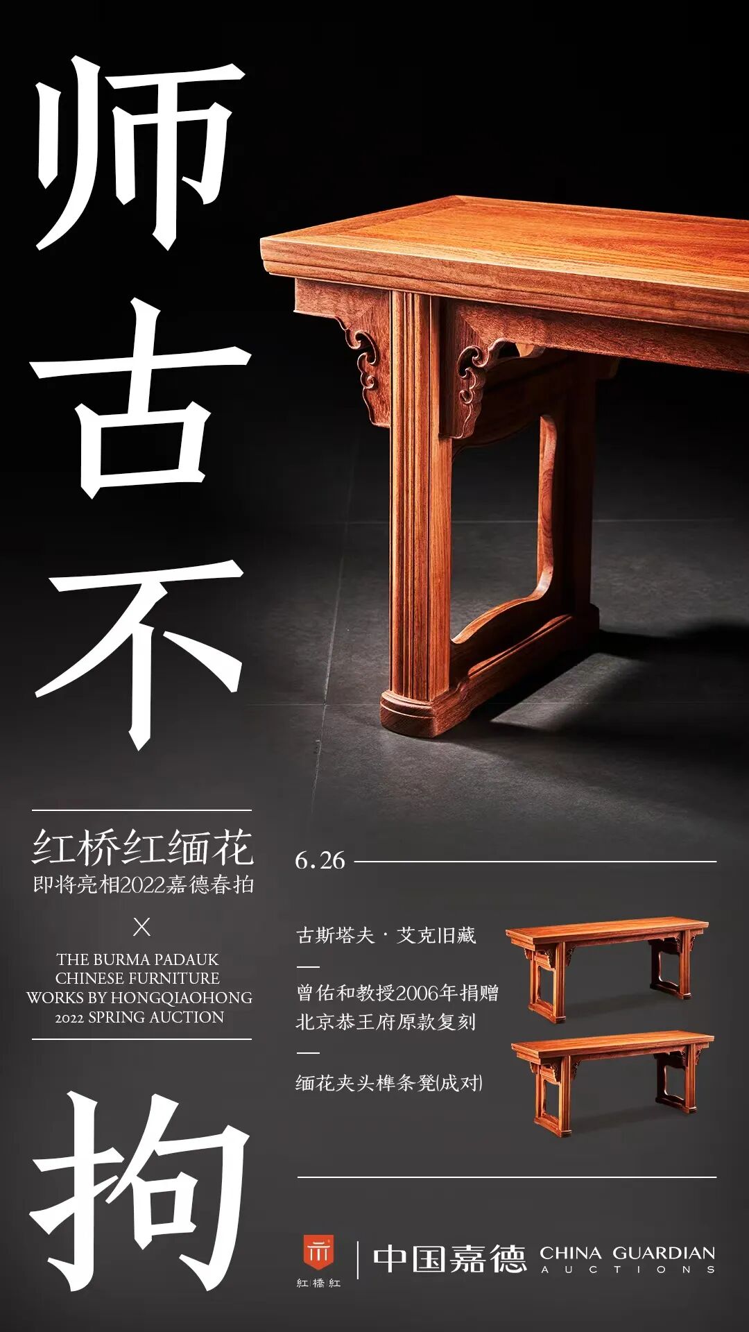 中国嘉德首次推出福建仙游一带的传承及创新古典家具(“仙作”),构成《匠心妙契》专场,其中红桥红品牌上拍3组共6件拍品,以缅甸花梨木制成,邀君共赏。