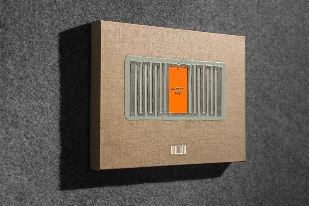 布面丙烯、RFID金属芯片,40 × 30 × 5 cm