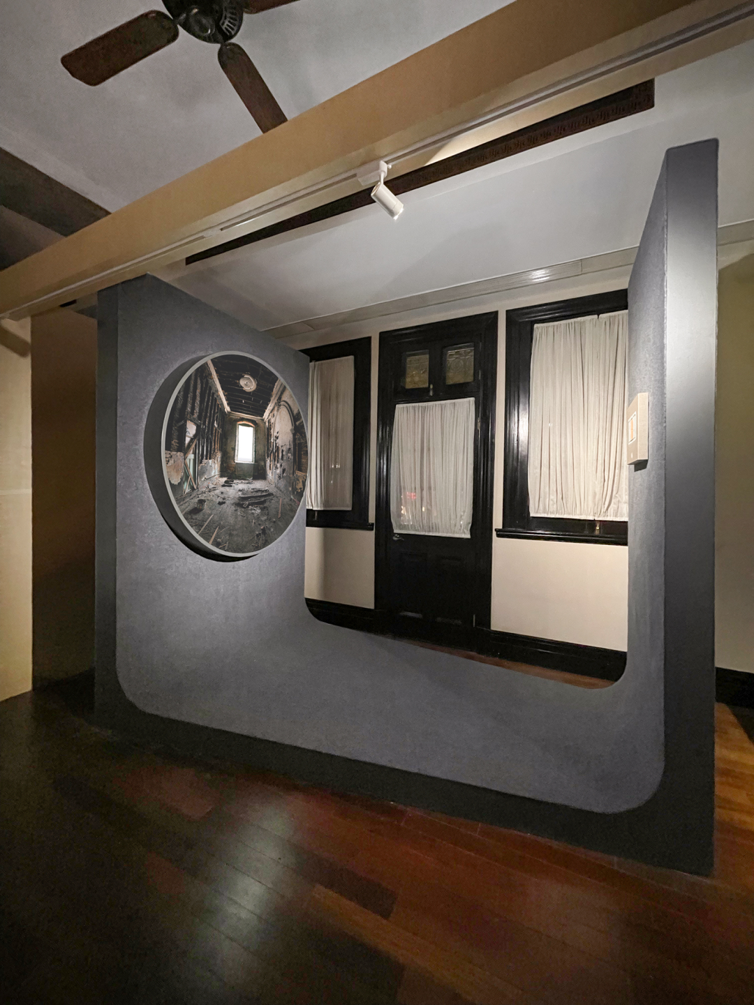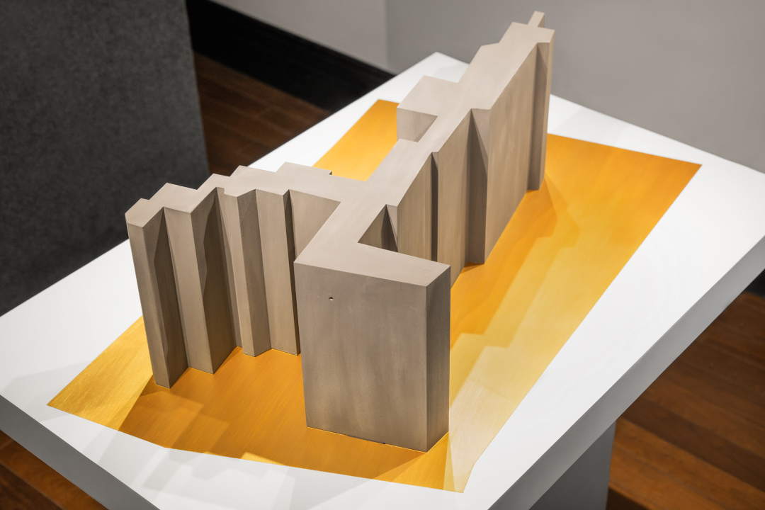 与前两位艺术家不同,高磊的驻留调研计划正在进行之中,而他本次驻留为“新天地壹号”创作的特定场域装置作品也正于“艺术家驻留项目展”中展出。在事先对展览现场的考察中他留意到建筑物的门窗结构与自己过往作品中的对应性,从而产生了这件作品的构想。他将2008年标志着职业生涯开始的第一件摄影作品《建筑N0.35-103#》与最新创作的芯片系列作品之一《RFID》在一个U型的构筑物中镜像式相对呈现,“它们分别是我目前创作生涯的起点和终点,同时《建筑N0.35-103#》中消失的世界入口,与新天地门窗所代表的现实世界的入口以及《RFID》所代表的未来数据世界的入口形成了时空焦点的交接关系。”