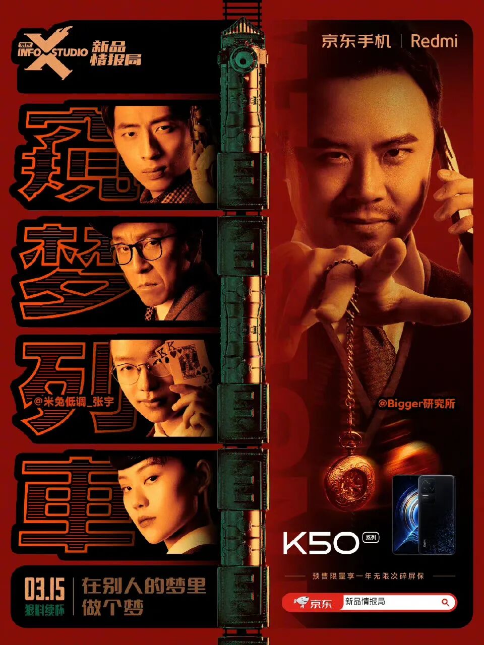 基于这样的大环境下,很多品牌也都开始借势悬疑的优势,纷纷以自身产品的卖点推出相应的悬疑式广告,从而潜移默化占据用户的心智。最近Redmi携手京东在新品Redmi K50推出之际,发布了悬疑短片《窥梦列车》,实现生动地将新品卖点进行输出。