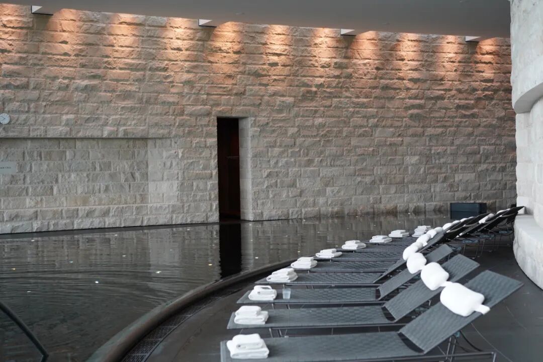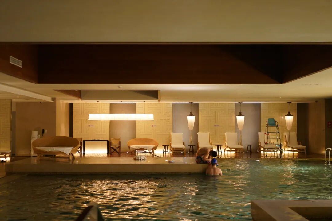 北京瑞吉 又一间世纪之交诞生的酒店,北京瑞吉的泳池尺度和玻璃温室构造,都极尽感人。听好友说,这座泳池旁侧泡池里还是真温泉,尽管我不知真假与否,还是在不间断畅泳一小时后,在泡池里舒心享用了“温泉”。