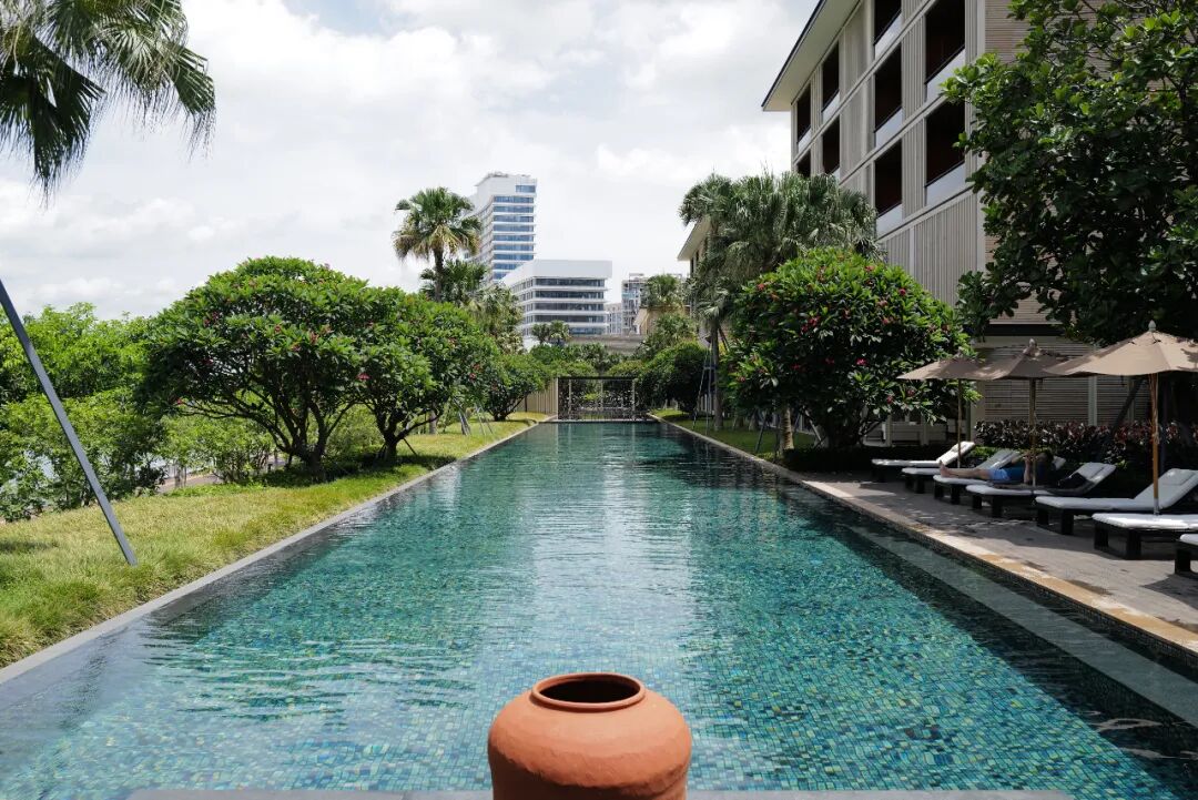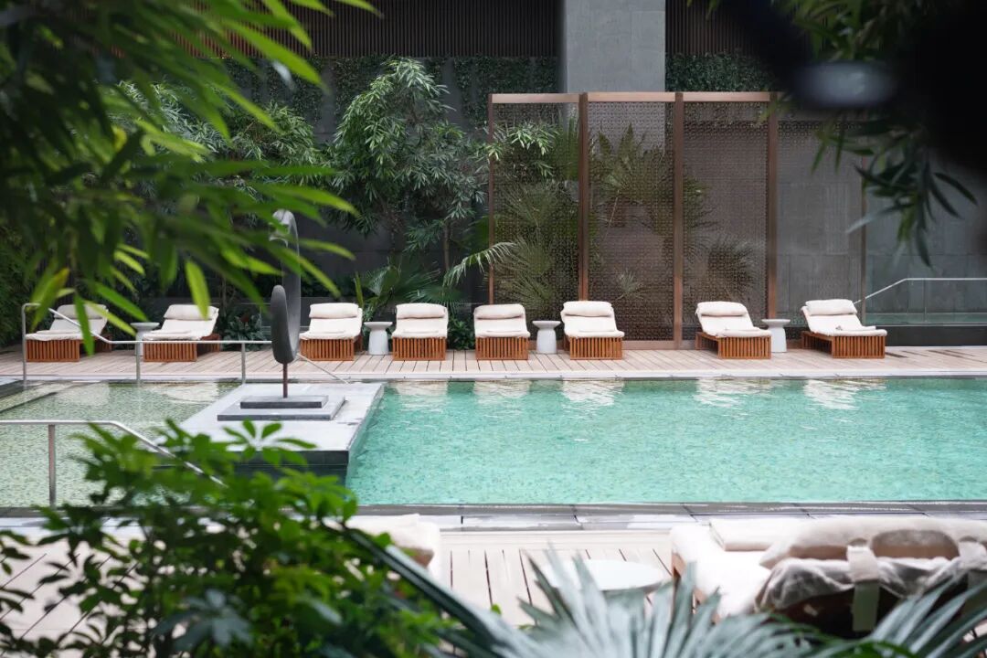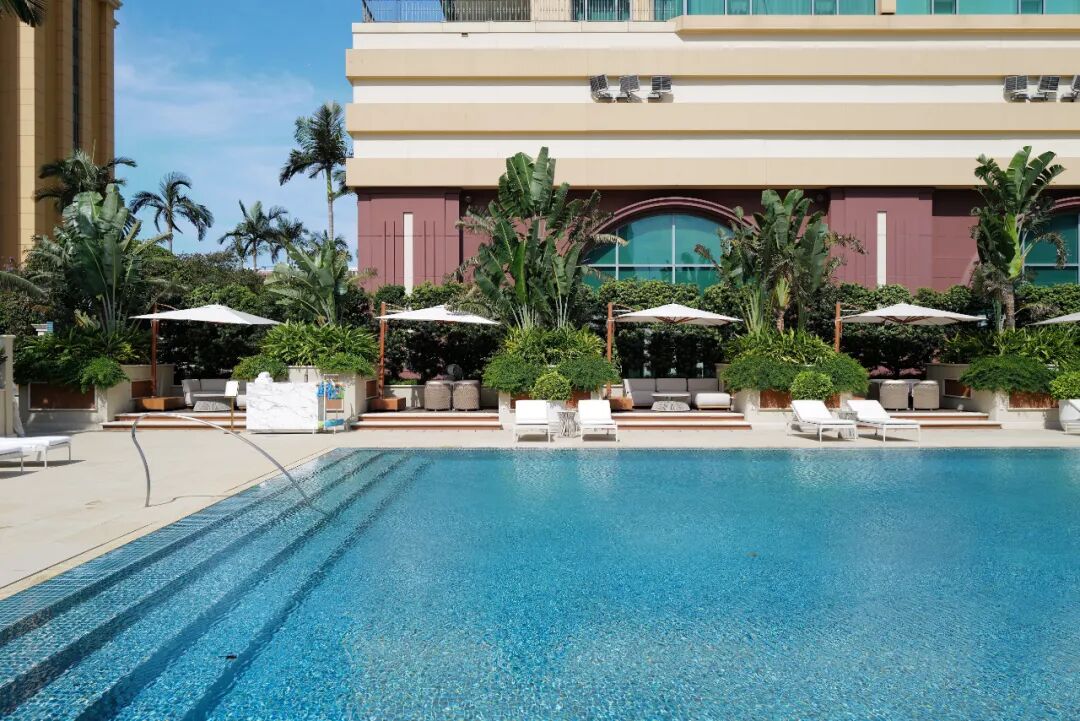 3. 澳门四季名荟 他家的泳池不似永利那般充满了美式戏剧张力,但规整的泳池造型和周围静谧的休憩席,把度假所需的舒心悠然呈现得恰到好处。
