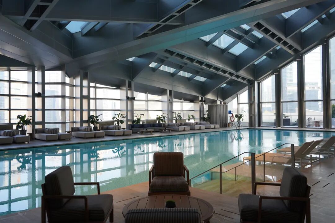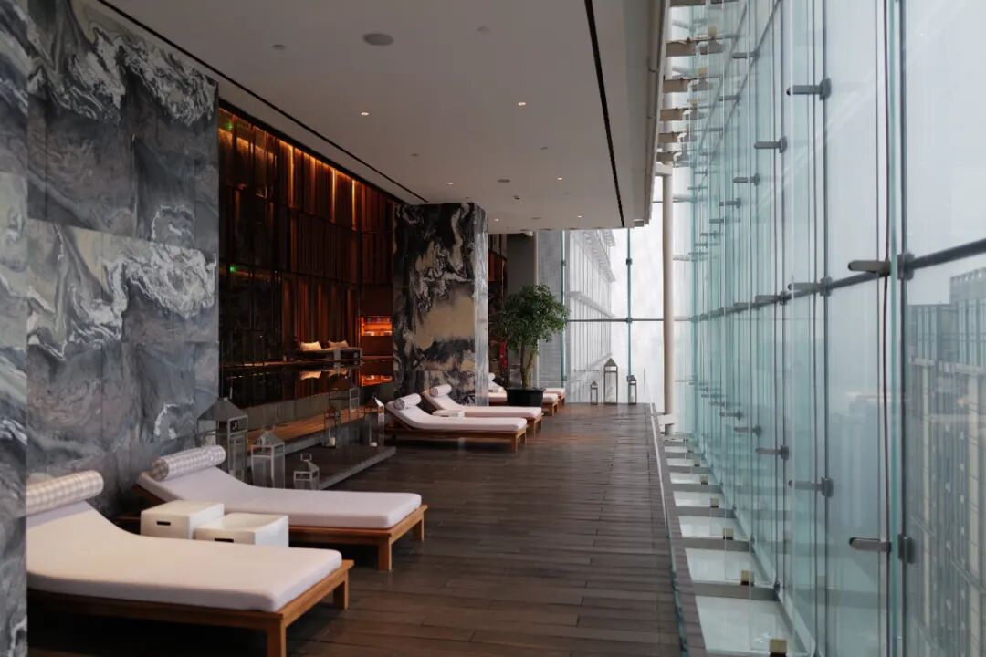 杭州,综合评定,我印象最好的泳池也出自杭州柏悦。其向外挑空的甲板温室设计,格外加分。