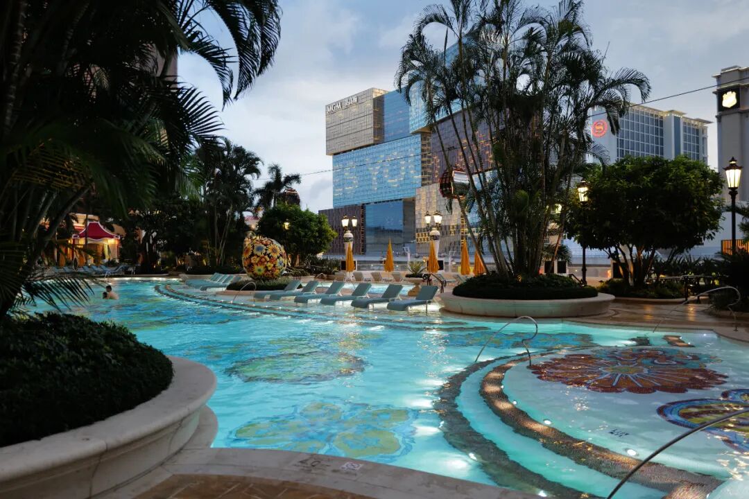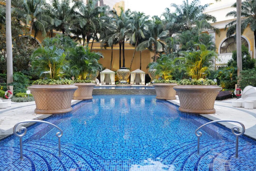 2. 澳门永利 有一回因上海台风,航班取消而滞留澳门,我立马在订了两晚澳门永利,在其水温舒适、绿意浓浓的泳池里治愈了一番,航班取消的困扰全消。