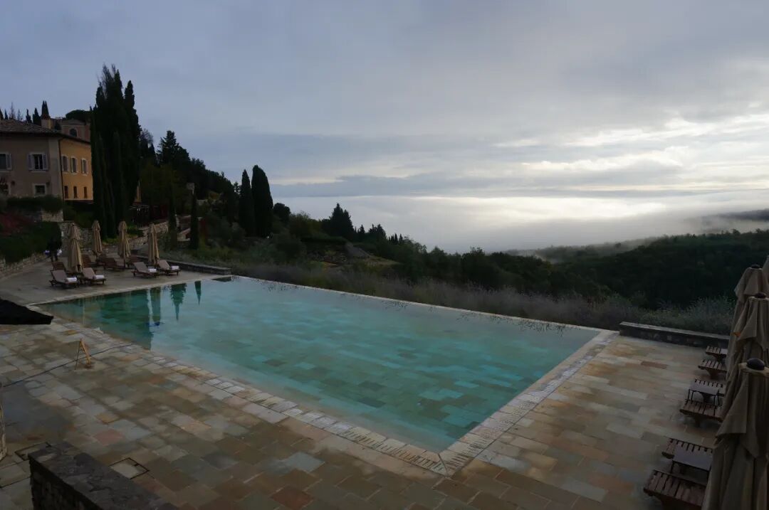 隶属菲拉格慕家族的托斯卡纳瑰丽,也有着很棒的高地泳池,就着山势的边缘打造,在池里眺望云海的时候太醉人了。