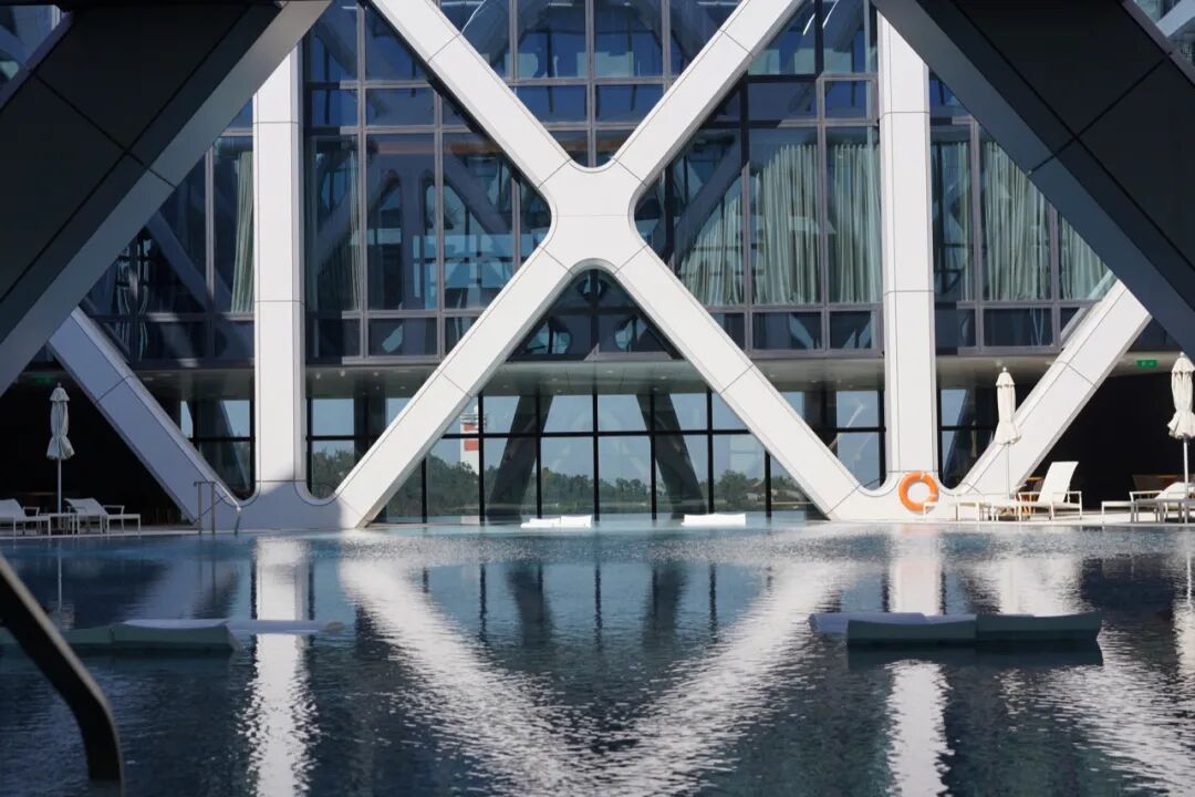 4. 澳门Morpheus 这座泳池位于酒店高区,能体会到Zaha Hadid建筑的独特肌理,也能在泳池边缘欣赏澳门机场的飞机起降。