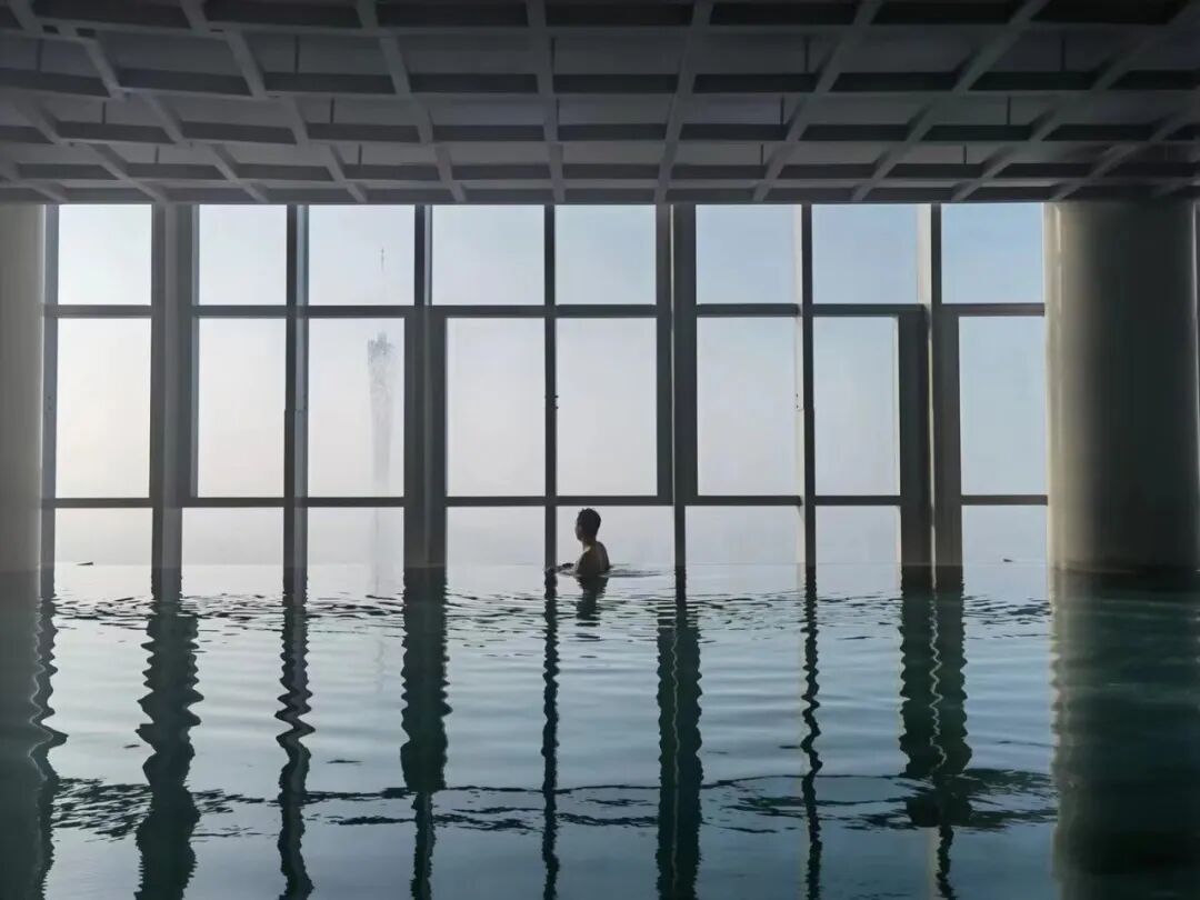 1. 广州柏悦 广州柏悦的很多设计和匠艺都很隐藏的(比如把成堆旧报纸切割后填墙),不仔细看是会忽略其用心的,记得其泳池要走一段楼梯抵达的,泳池的窗户如画框般截取了欣赏“小蛮腰”的绝佳视角,这种静静对话地标的姿态很柏悦。另补充一冷门知识,泳池顶上的“蕾丝吊顶”刚好呼应了小蛮腰的“外衣”。