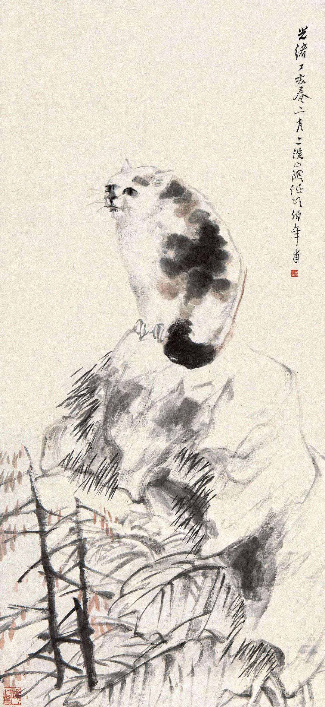 任伯年非常喜欢画猫,曾为了观察它,夜里一度屋顶跟踪,不小心掉进人家的院子,被当贼给抓了起来....为了画个猫,这也没谁了!