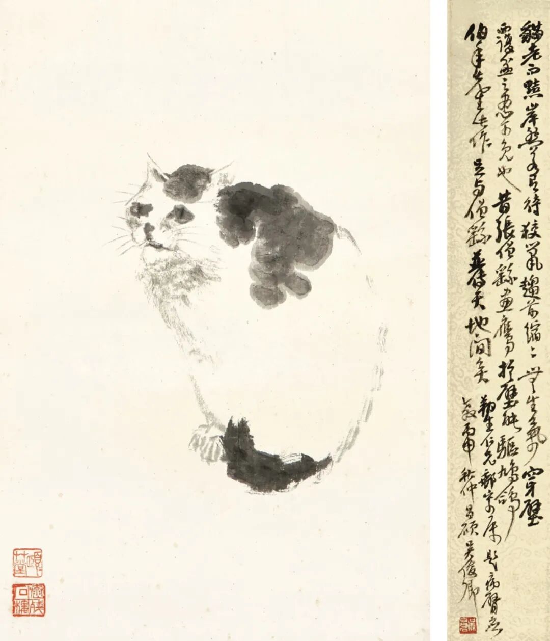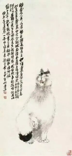 他笔下的猫图,布局简淡,猫态生动活脱,看其笔势,纵横挥洒,无线条羁绊,极具个性。就是这画风有点...丑萌丑萌的,猫儿看起来像一个翻滚的皮球~