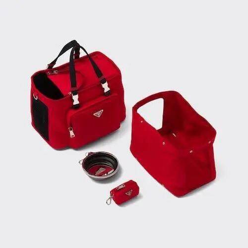 Prada宠物系列外出背包,是用经典尼龙材质为打造的。同系列还推出过羽绒服、雨衣等宠物服装方便主人与爱宠在不同天气出街遛弯。