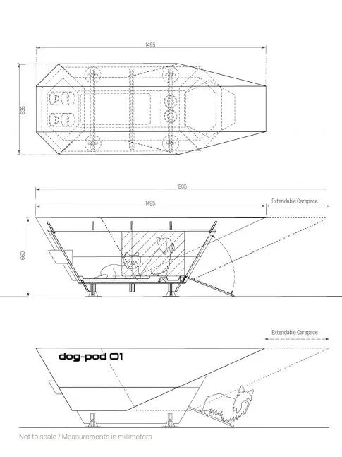 Dog Pod灵感来自于电影星球大战,设计师给汪汪队设计了一个可以在太空旅居的地方。六边形飞船的可调节的软垫方便船舱在不同环境着陆。