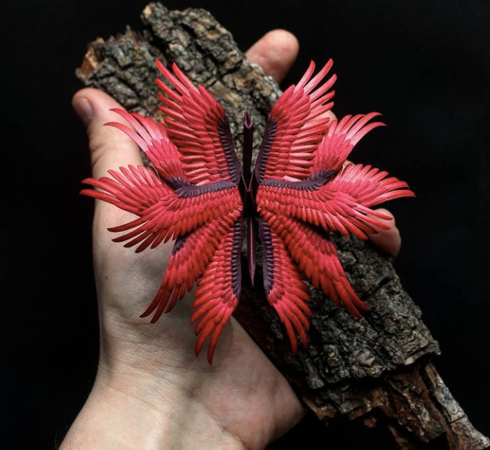 这位艺术家的纸鹤作品,可比我们小时候折的那种精致、复杂多了,每一个都堪称艺术品。克里斯蒂安·马里安丘克的千纸鹤,有着各种色彩和装饰,工艺十分复杂,有用剪刀剪出的羽毛,压花,还有叶子装饰,串珠等等,风格也是多种多样,有低调的极简风,时尚前卫的潮流风等等。