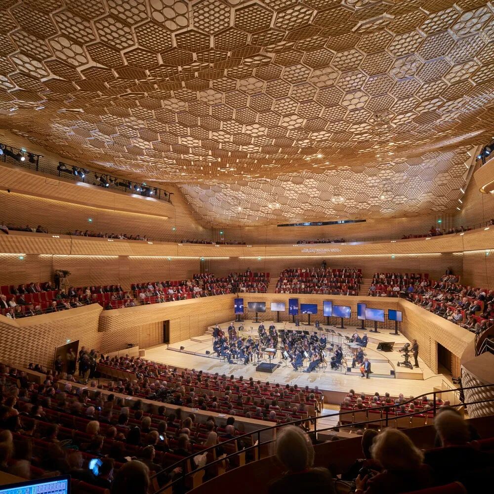 墙体向岛尖逐渐降低,一个蛋形的古典音乐厅漂浮在水面之上。沿着木质网格的立面,将安装一个巨大的三角形太阳能电池板,像帆一样根据太阳的方向移动,以高效发电,并保护后面的大堂玻璃表面。