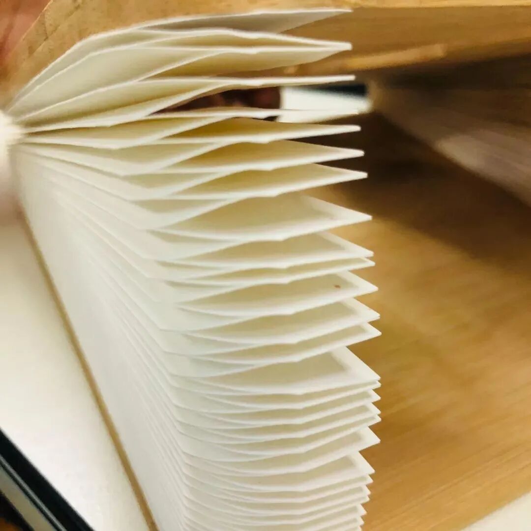 纸张的表面也是采用了手工打磨的方式,切割平滑,虽不及工业品般整齐划一,却也富有质感。